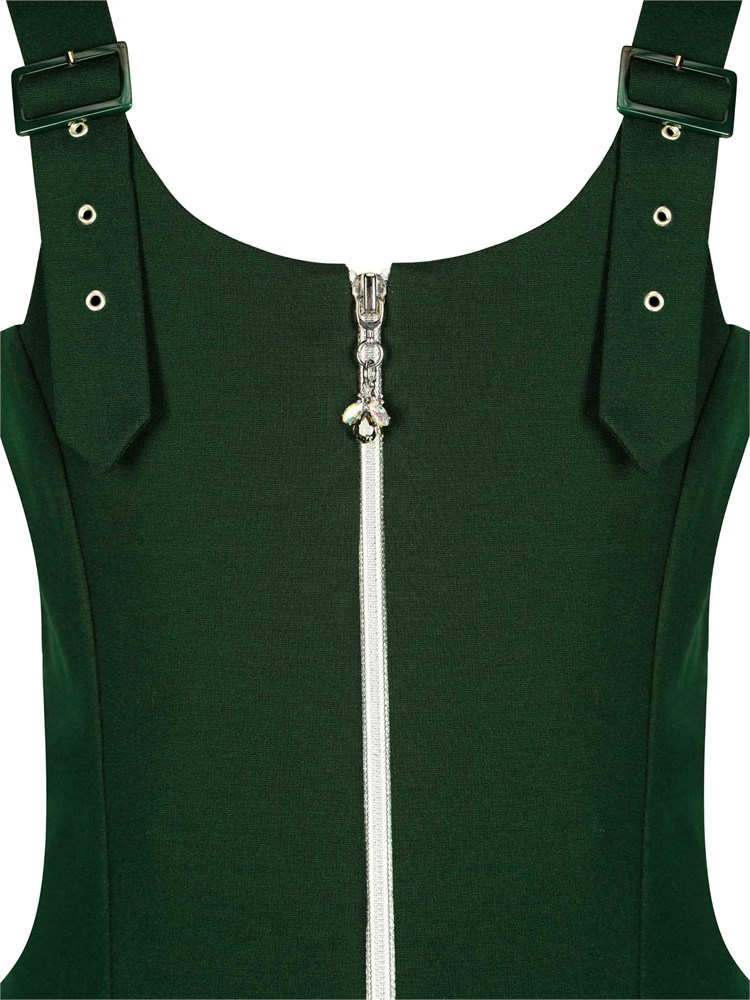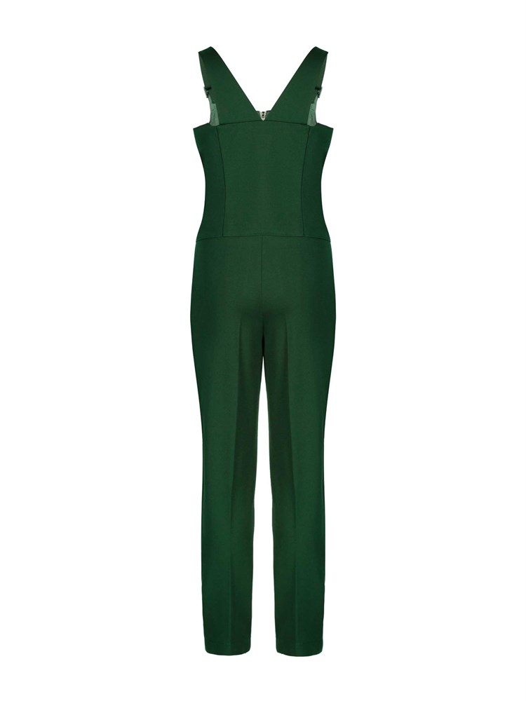 Комбинезон выполнен из трикотажного полотна. С карманами. Лямки регулируются. Застегивается на декоративную серебристую молнию; Состав: Вискоза - 60%, Нейлон - 35 %, Эластан - 5%.