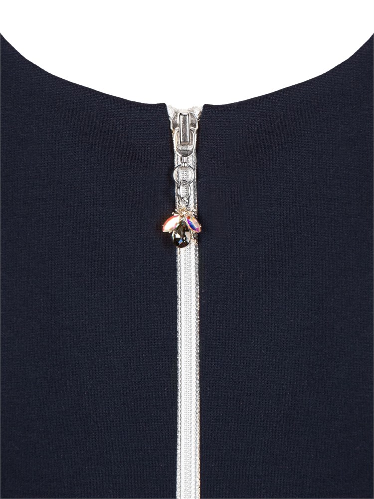 Комбинезон выполнен из трикотажного полотна. С карманами. Лямки регулируются. Застегивается на декоративную серебристую молнию; Состав: Вискоза - 60%, Нейлон - 35 %, Эластан - 5%.