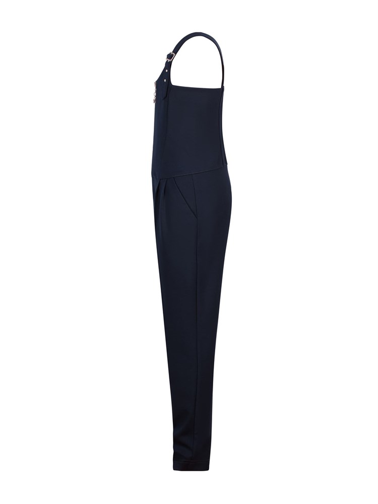 Комбинезон выполнен из трикотажного полотна. С карманами. Лямки регулируются. Застегивается на декоративную серебристую молнию; Состав: Вискоза - 60%, Нейлон - 35 %, Эластан - 5%.
