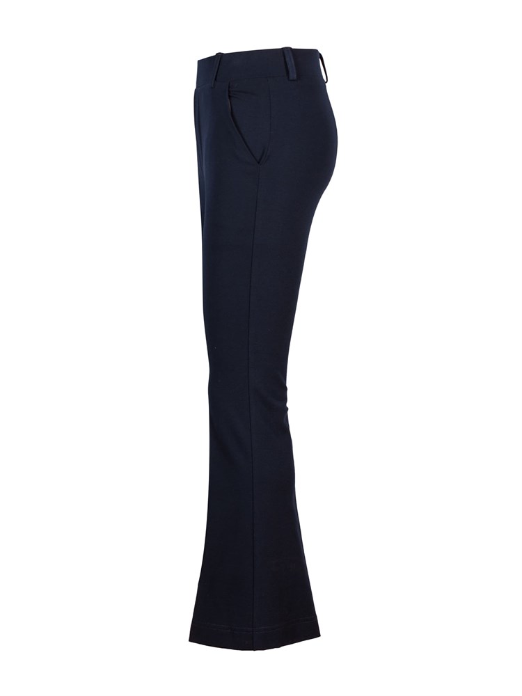 Брюки клеш, с карманами. Выполнены из трикотажного полотна; Состав: Вискоза - 60%, Нейлон - 35 %, Эластан - 5%.