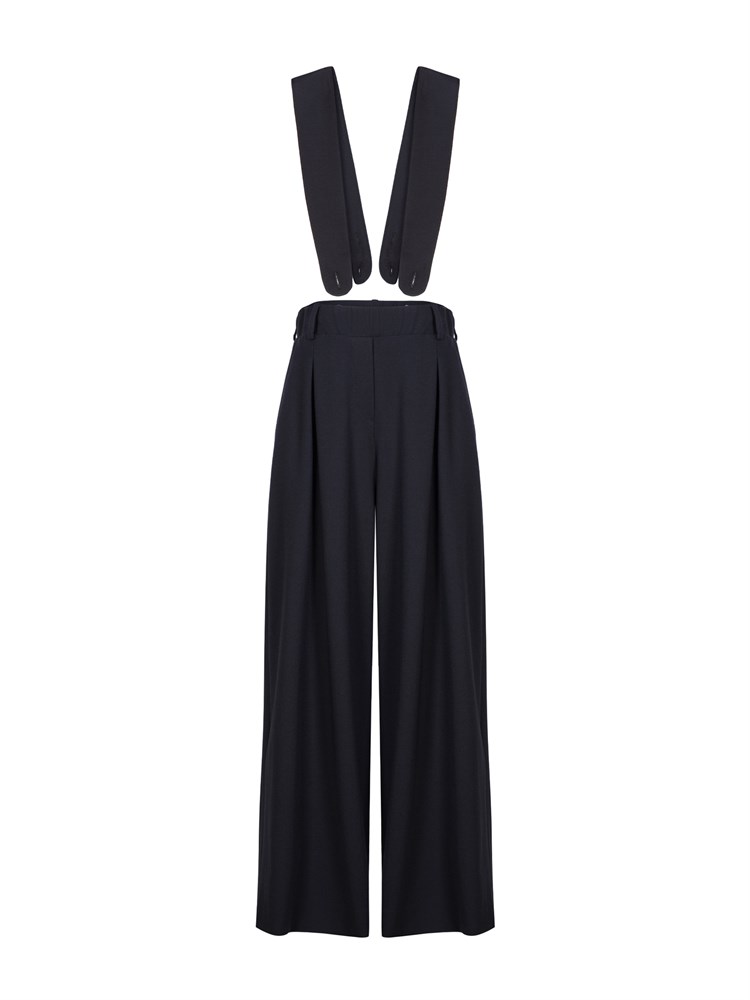 Комбинезон с брюками «Палаццо», выполнен из костюмного трикотажа, с карманами. Регулируемые по длине лямки можно полностью отстегнуть. Поэтому данную модель можно использовать и как комбинезон, и как брюки «Палаццо»; Состав: Вискоза - 60%, Нейлон - 35 %, Эластан - 5%.