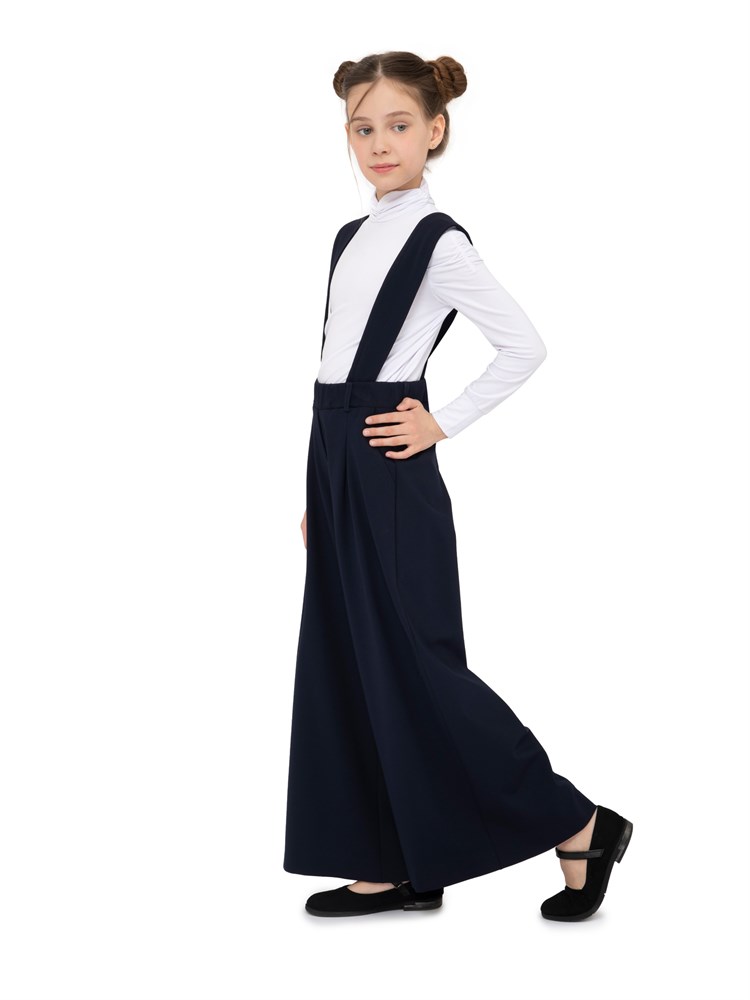 Комбинезон с брюками «Палаццо», выполнен из костюмного трикотажа, с карманами. Регулируемые по длине лямки можно полностью отстегнуть. Поэтому данную модель можно использовать и как комбинезон, и как брюки «Палаццо»; Состав: Вискоза - 60%, Нейлон - 35 %, Эластан - 5%.