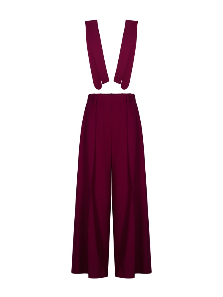 Комбинезон с брюками «Палаццо», выполнен из костюмного трикотажа, с карманами. На брючинах спереди отстрочка текстурированной нитью. Регулируемые по длине лямки можно полностью отстегнуть. Поэтому данную модель можно использовать и как комбинезон, и как брюки «Палаццо»; Состав: Вискоза - 60%, Нейлон - 35 %, Эластан - 5%.