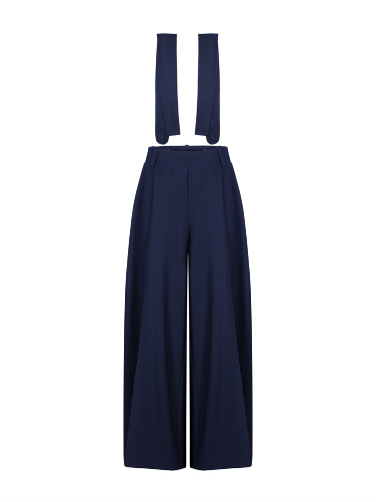 Комбинезон с брюками «Палаццо», выполнен из костюмного трикотажа, с карманами. На брючинах спереди отстрочка текстурированной нитью. Регулируемые по длине лямки можно полностью отстегнуть. Поэтому данную модель можно использовать и как комбинезон, и как брюки «Палаццо»; Состав: Вискоза - 60%, Нейлон - 35 %, Эластан - 5%.