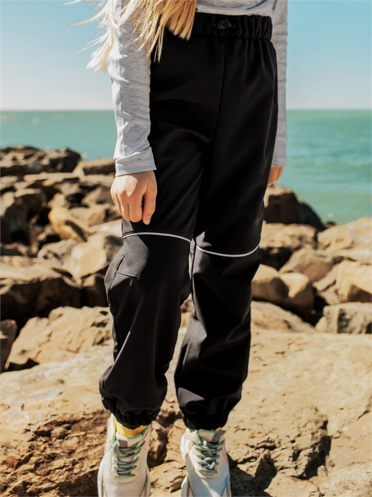 Брюки выполнены из материала «Софтшелл». Это высокотехнологичная трёхслойная дышащая ткань – мембрана утеплённая флисом. Отлично защищает от влаги и ветра. Светоотражающие элементы. Манжеты и пояс на резинке + дополнительная утяжка с фиксатором. Универсальный вариант для прогулок, активных игр и повседневного использования. Температурный режим от +3 до +18 градусов; Состав: 95% полиэстер, 5% эластан