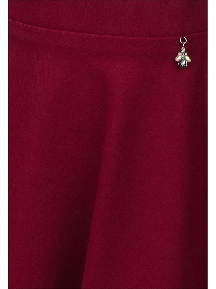 Юбка полусолнце. К поясу пришито декоративное украшение из страз "мушка". Выполнена из трикотажного полотна; Состав: Вискоза - 60%, Нейлон - 35%, Эластан - 5%.