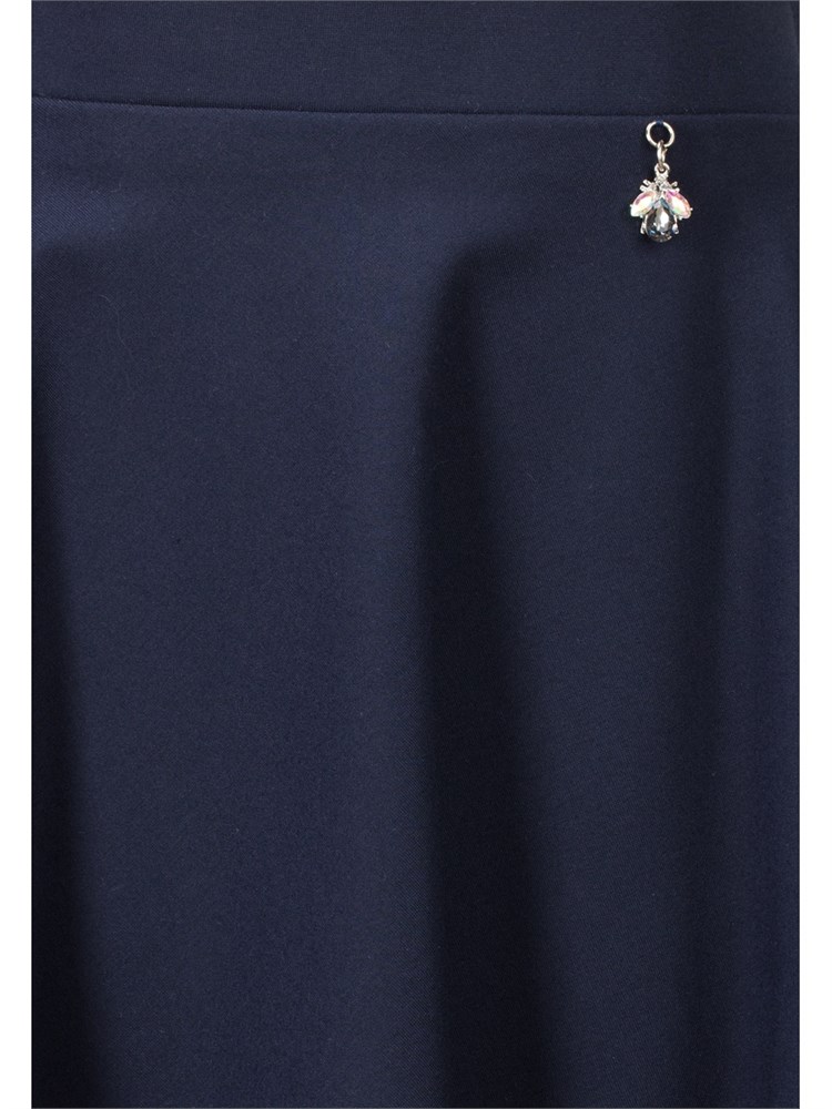 Юбка полусолнце. К поясу пришито декоративное украшение из страз "мушка". Выполнена из трикотажного полотна; Состав: Вискоза - 60%, Нейлон - 35%, Эластан - 5%.