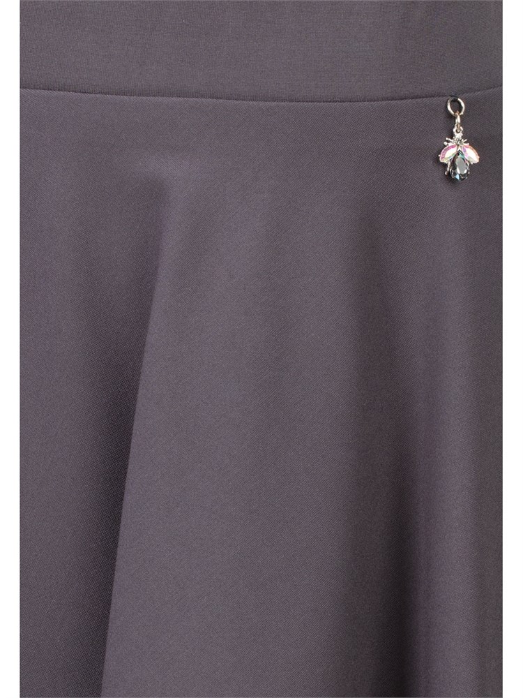 Юбка полусолнце. К поясу пришито декоративное украшение из страз "мушка". Выполнена из трикотажного полотна; Состав: Вискоза - 60%, Нейлон - 35%, Эластан - 5%.