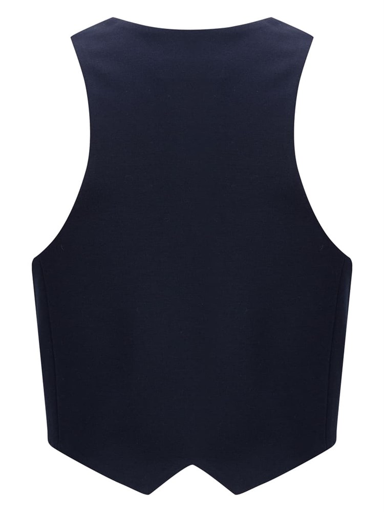 Укороченный жилет, застегивается на три серебристые декоративные пуговицы; Состав: Вискоза - 60%, Нейлон - 35 %, Эластан - 5%.