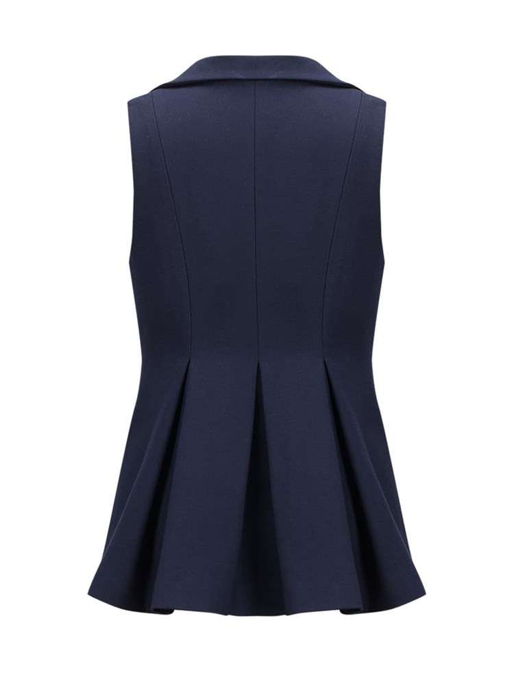 Удлиненный жилет с прорезными карманами на пуговицах, воротник украшен декоративной брошью в виде совы со стразами; Состав: Вискоза - 60%, Нейлон - 35 %, Эластан - 5%.
