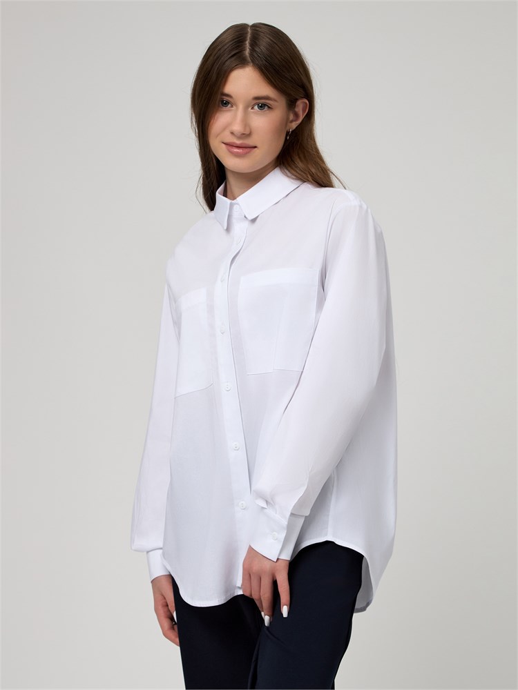 Блузка оверсайз школьная для девочки, с двумя накладными карманами. Классическая блузка оверсайз имеет стильный и модный крой спины. Модная и стильная рубашка оверсайз подойдёт как школьная форма для девочек, а также как праздничная и нарядная блузка. Школьная блузка оверсайз для девочки подростка - идеальный выбор в школу. Рубашка имеет свободный крой, который позволяет девочкам чувствовать себя уютно весь день.
