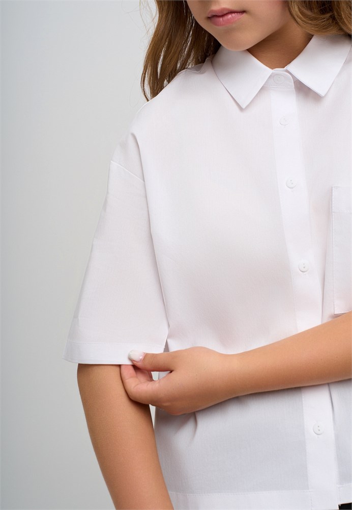 Блузка для девочки школьная белая. Блузка школьная оверсайз подойдёт на любую фигуру. Блузка для девочки школьная с коротким рукавом – идеальный выбор для вашей девочки, которая хочет быть модной и стильной в любой ситуации. Блузка школьная для девочки оверсайз белая будет актуальна не только для подростков - она станет настоящей находкой и для девочек младшего возраста. Блузка молодежная оверсайз – это универсальная вещь, которая прекрасно подойдёт для подростков всех возрастов. Рубашка для девочки школьная соответствует школьным требованиям и обладает неповторимым стилем. Под блузку оверсайз подойдёт как школьная юбка для девочки, так и школьные брюки для девочки. Блузка школьная для девочки подростка с коротким рукавом очень удобна и проста в уходе.