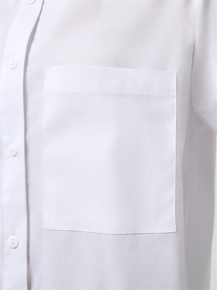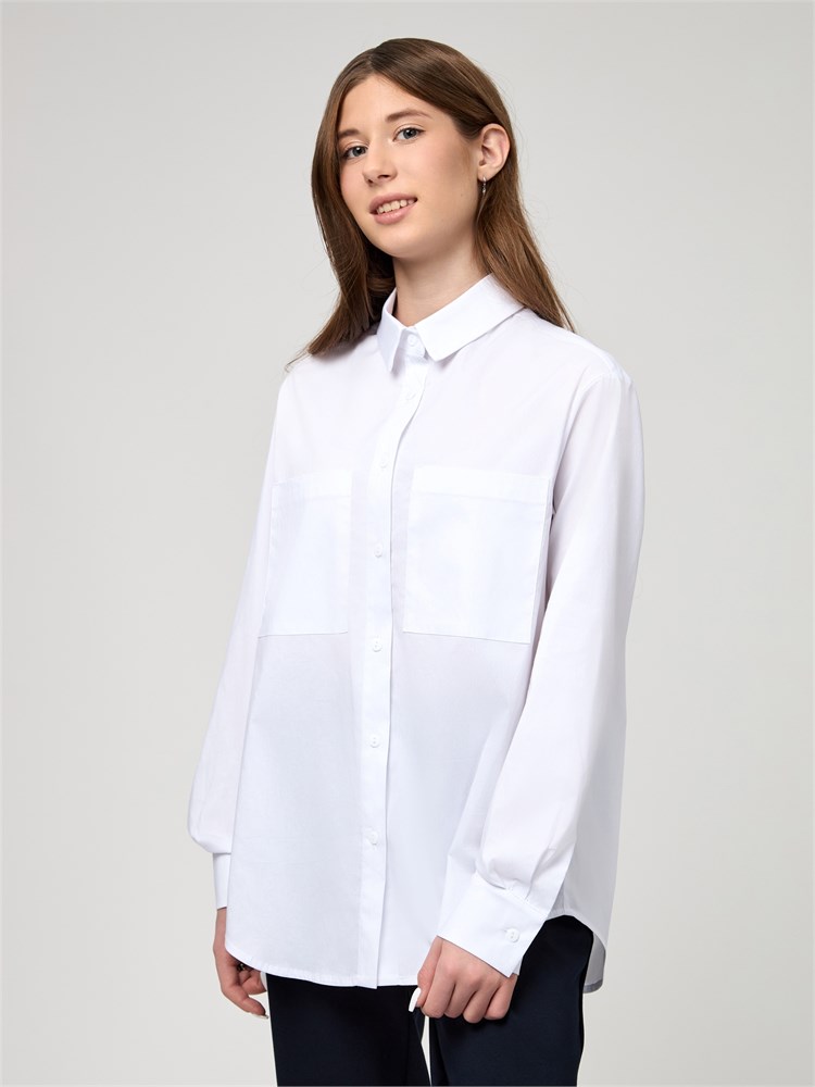 Блузка оверсайз школьная для девочки, с двумя накладными карманами. Классическая блузка оверсайз имеет стильный и модный крой спины. Модная и стильная рубашка оверсайз подойдёт как школьная форма для девочек, а также как праздничная и нарядная блузка. Школьная блузка оверсайз для девочки подростка - идеальный выбор в школу. Рубашка имеет свободный крой, который позволяет девочкам чувствовать себя уютно весь день.