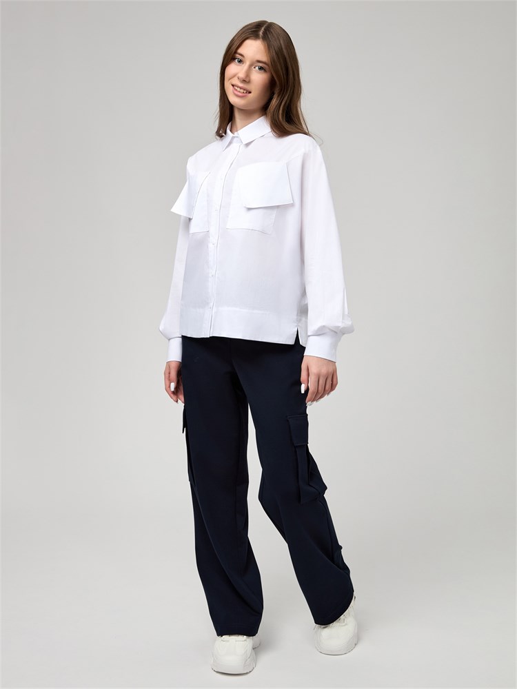 Блузка оверсайз школьная для девочки, с двумя дизайнерскими накладными карманами. Укороченная модель. Классическая блузка оверсайз имеет стильный и необычный крой. Модная и стильная рубашка оверсайз подойдёт как школьная форма для девочек, а также как праздничная и нарядная блузка. Школьная блузка оверсайз для девочки подростка - идеальный выбор в школу. Рубашка имеет свободный крой, который позволяет девочкам чувствовать себя уютно весь день.