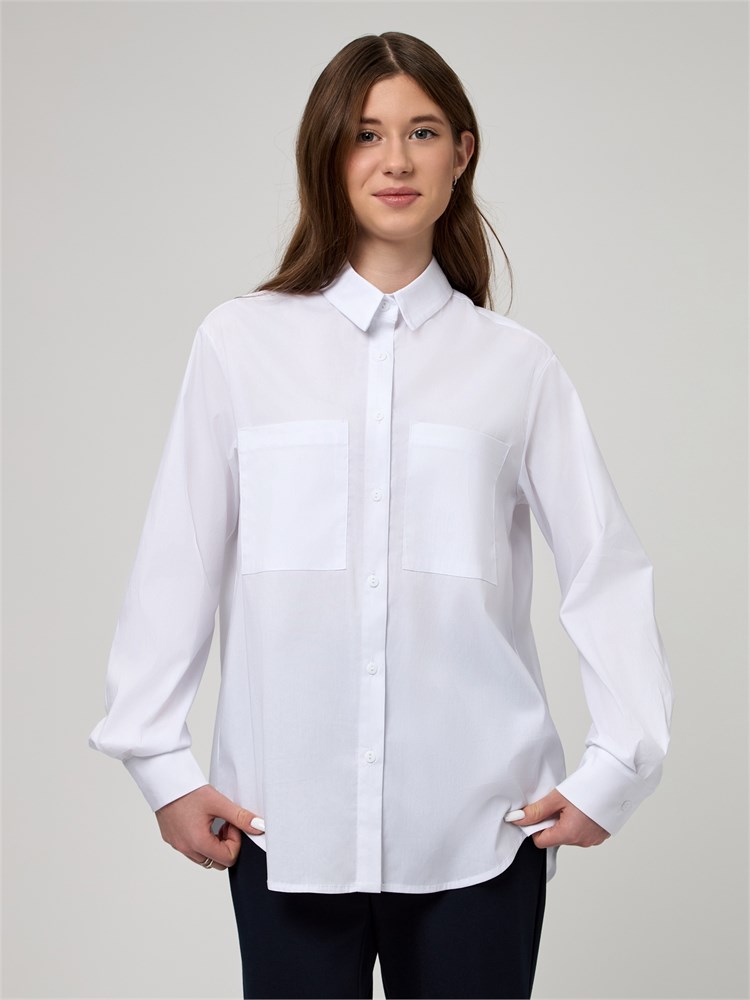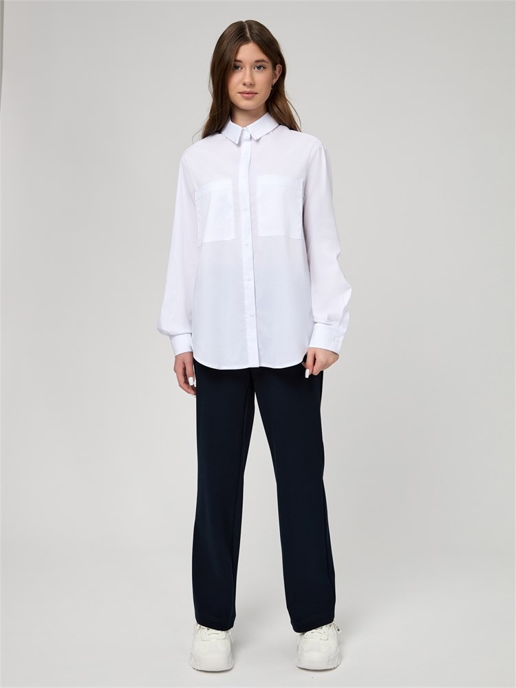 Блузка оверсайз школьная для девочки, с двумя накладными карманами. Классическая блузка оверсайз имеет стильный и модный крой спины. Модная и стильная рубашка оверсайз подойдёт как школьная форма для девочек, а также как праздничная и нарядная блузка. Школьная блузка оверсайз для девочки подростка - идеальный выбор в школу. Рубашка имеет свободный крой, который позволяет девочкам чувствовать себя уютно весь день.