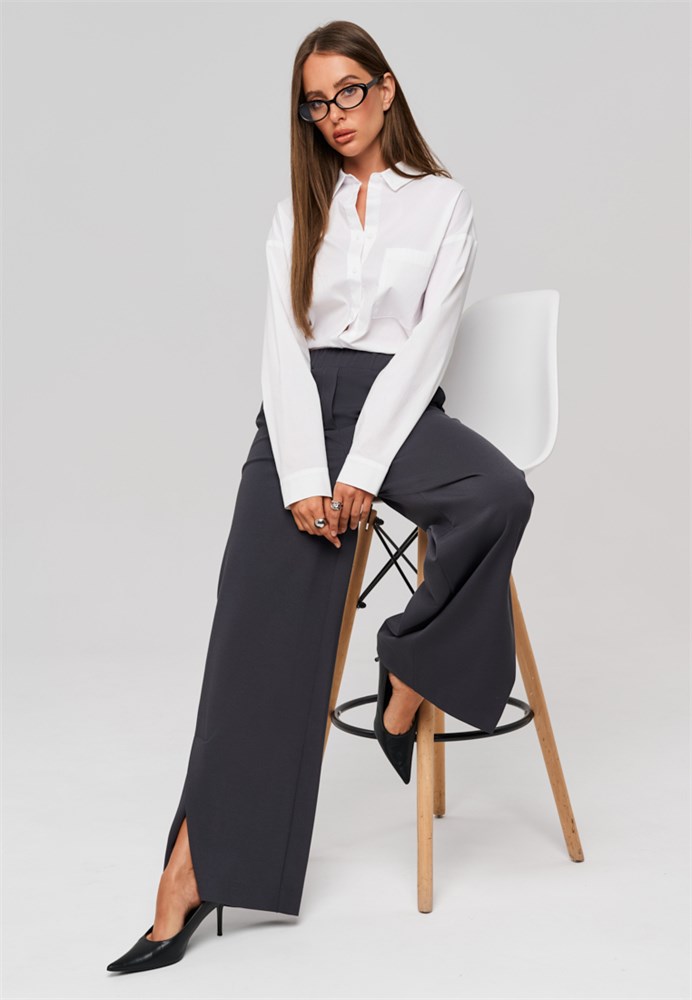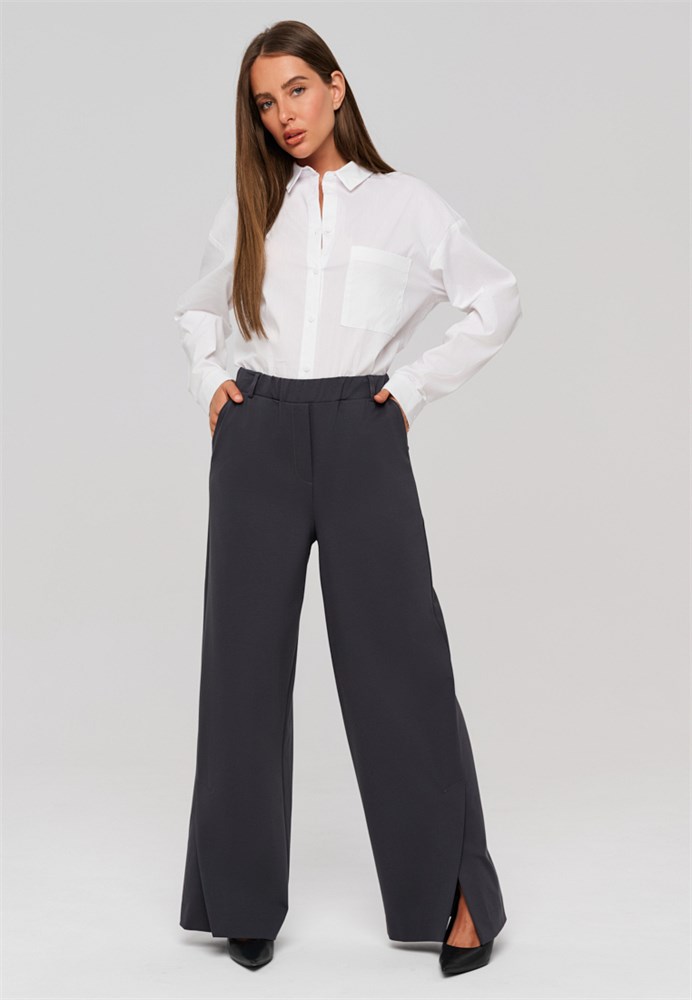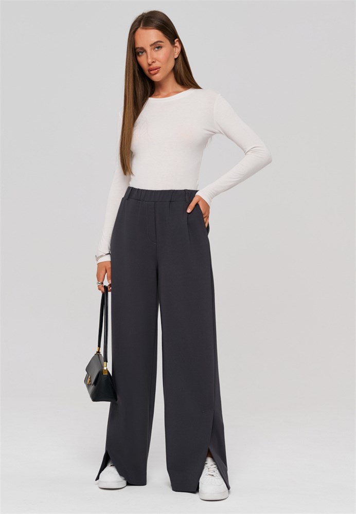 Брюки женские серые прямые. Брюки женские трубы позволяют сохранить свободу движений и подходят для любого типа фигуры. По низу брюк, в боковом шве разрез – щлица, которая плавно заходит на переднюю половинку брюк и создает элегантный силуэт и легкий образ. Брюки прямые женские серые выполнены из качественной, плотной, приятной на ощупь трикотажной ткани, которая не вытягивается и не скатывается при активном образе жизни. Брюки женские стрейч серые не деформируются после стирки. Брюки женские трикотажные отличное решение для тех, кто ценит удобство и долговечность одежды. Пояс на резинке обеспечивает отличную посадку без необходимости ремня, а боковые карманы добавляют практичности. Брюки классические женские с разрезом создадут модный образ, а также подчеркнут индивидуальность каждой девушки. Брюки офисные женские привлекательны своим дизайном и функциональностью. Брюки деловые женские идеальны как для повседневной носки, так и для более официальных мероприятий. Брюки серые женские классические гармонично с