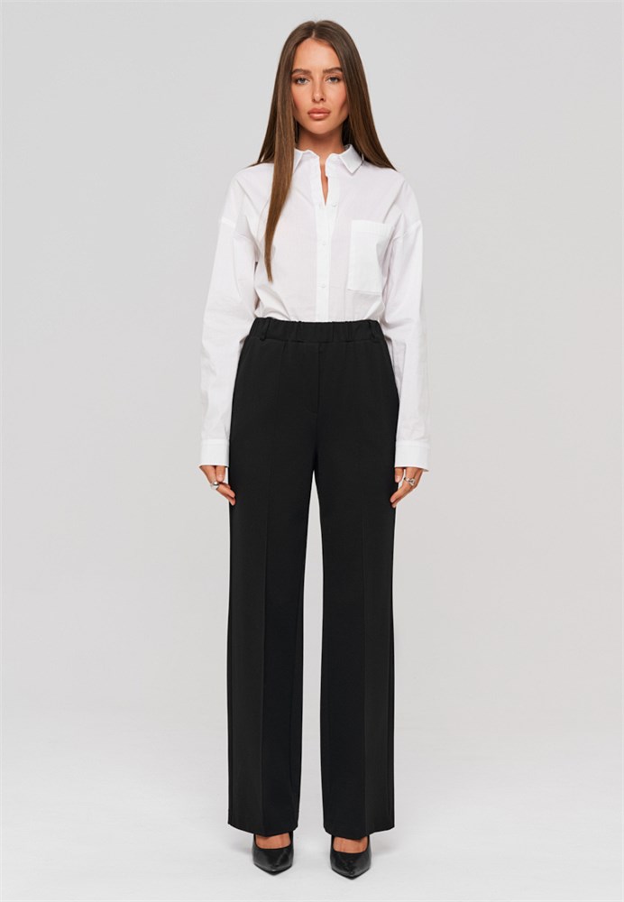 Брюки женские черные прямые. Брюки женские трубы позволяют сохранить свободу движений и подходят для любого типа фигуры. Брюки прямые женские черные выполнены из качественной, плотной, приятной на ощупь трикотажной ткани, которая не вытягивается и не скатывается при активном образе жизни. Брюки женские стрейч черные не деформируются после стирки. Брюки женские трикотажные отличное решение для тех, кто ценит удобство и долговечность одежды. Пояс на резинке обеспечивает отличную посадку без необходимости ремня, а боковые карманы добавляют практичности. Брюки классические женские со стрелками создадут модный образ, а также подчеркнут индивидуальность каждой девушки. Брюки офисные женские привлекательны своим дизайном и функциональностью. Брюки деловые женские идеальны как для повседневной носки, так и для более официальных мероприятий. Брюки черные женские классические гармонично сочетаются с любым верхом. Брюки женские с карманами прямые, позволяют подобрать любую обувь, в зависимости от образа, будь то класси