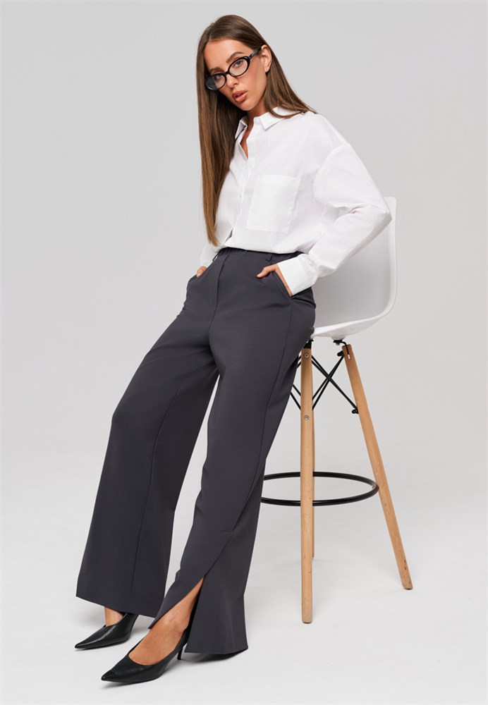 Брюки женские серые прямые. Брюки женские трубы позволяют сохранить свободу движений и подходят для любого типа фигуры. По низу брюк, в боковом шве разрез – щлица, которая плавно заходит на переднюю половинку брюк и создает элегантный силуэт и легкий образ. Брюки прямые женские серые выполнены из качественной, плотной, приятной на ощупь трикотажной ткани, которая не вытягивается и не скатывается при активном образе жизни. Брюки женские стрейч серые не деформируются после стирки. Брюки женские трикотажные отличное решение для тех, кто ценит удобство и долговечность одежды. Пояс на резинке обеспечивает отличную посадку без необходимости ремня, а боковые карманы добавляют практичности. Брюки классические женские с разрезом создадут модный образ, а также подчеркнут индивидуальность каждой девушки. Брюки офисные женские привлекательны своим дизайном и функциональностью. Брюки деловые женские идеальны как для повседневной носки, так и для более официальных мероприятий. Брюки серые женские классические гармонично с