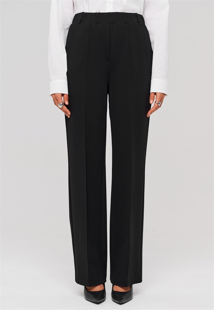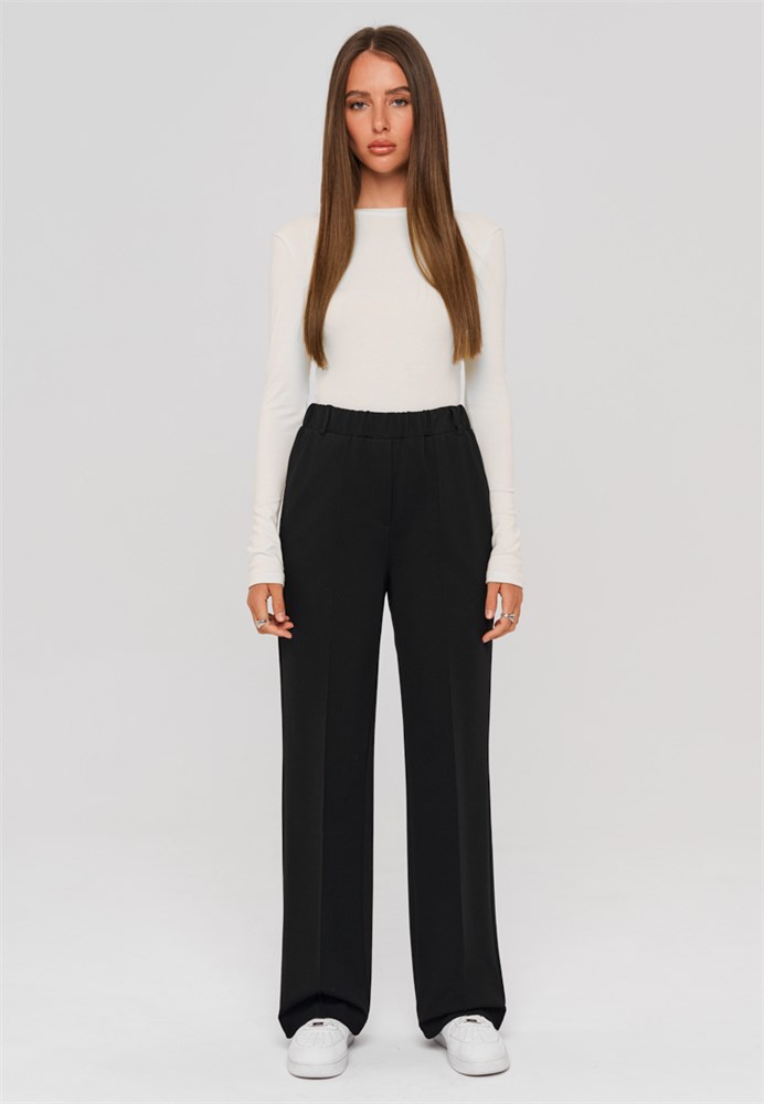 Брюки женские черные прямые. Брюки женские трубы позволяют сохранить свободу движений и подходят для любого типа фигуры. Брюки прямые женские черные выполнены из качественной, плотной, приятной на ощупь трикотажной ткани, которая не вытягивается и не скатывается при активном образе жизни. Брюки женские стрейч черные не деформируются после стирки. Брюки женские трикотажные отличное решение для тех, кто ценит удобство и долговечность одежды. Пояс на резинке обеспечивает отличную посадку без необходимости ремня, а боковые карманы добавляют практичности. Брюки классические женские со стрелками создадут модный образ, а также подчеркнут индивидуальность каждой девушки. Брюки офисные женские привлекательны своим дизайном и функциональностью. Брюки деловые женские идеальны как для повседневной носки, так и для более официальных мероприятий. Брюки черные женские классические гармонично сочетаются с любым верхом. Брюки женские с карманами прямые, позволяют подобрать любую обувь, в зависимости от образа, будь то класси