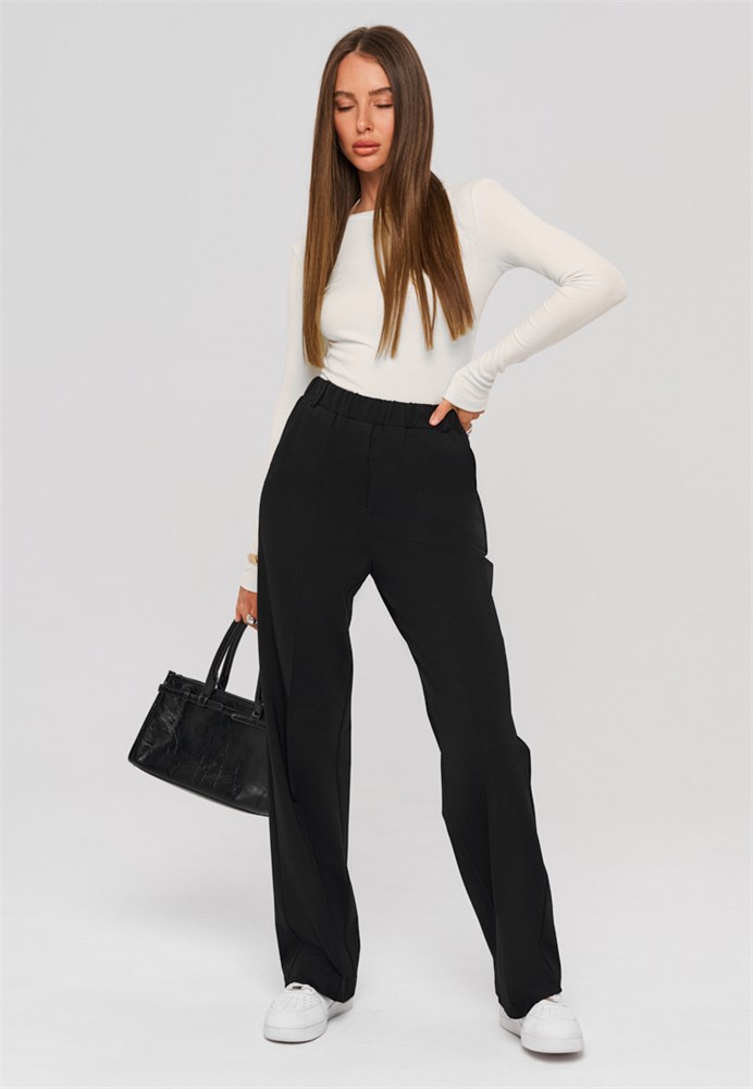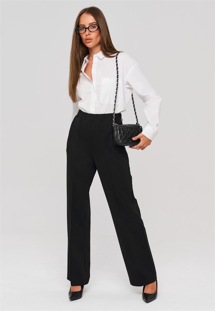 Брюки женские черные прямые. Брюки женские трубы позволяют сохранить свободу движений и подходят для любого типа фигуры. Брюки прямые женские черные выполнены из качественной, плотной, приятной на ощупь трикотажной ткани, которая не вытягивается и не скатывается при активном образе жизни. Брюки женские стрейч черные не деформируются после стирки. Брюки женские трикотажные отличное решение для тех, кто ценит удобство и долговечность одежды. Пояс на резинке обеспечивает отличную посадку без необходимости ремня, а боковые карманы добавляют практичности. Брюки классические женские со стрелками создадут модный образ, а также подчеркнут индивидуальность каждой девушки. Брюки офисные женские привлекательны своим дизайном и функциональностью. Брюки деловые женские идеальны как для повседневной носки, так и для более официальных мероприятий. Брюки черные женские классические гармонично сочетаются с любым верхом. Брюки женские с карманами прямые, позволяют подобрать любую обувь, в зависимости от образа, будь то класси
