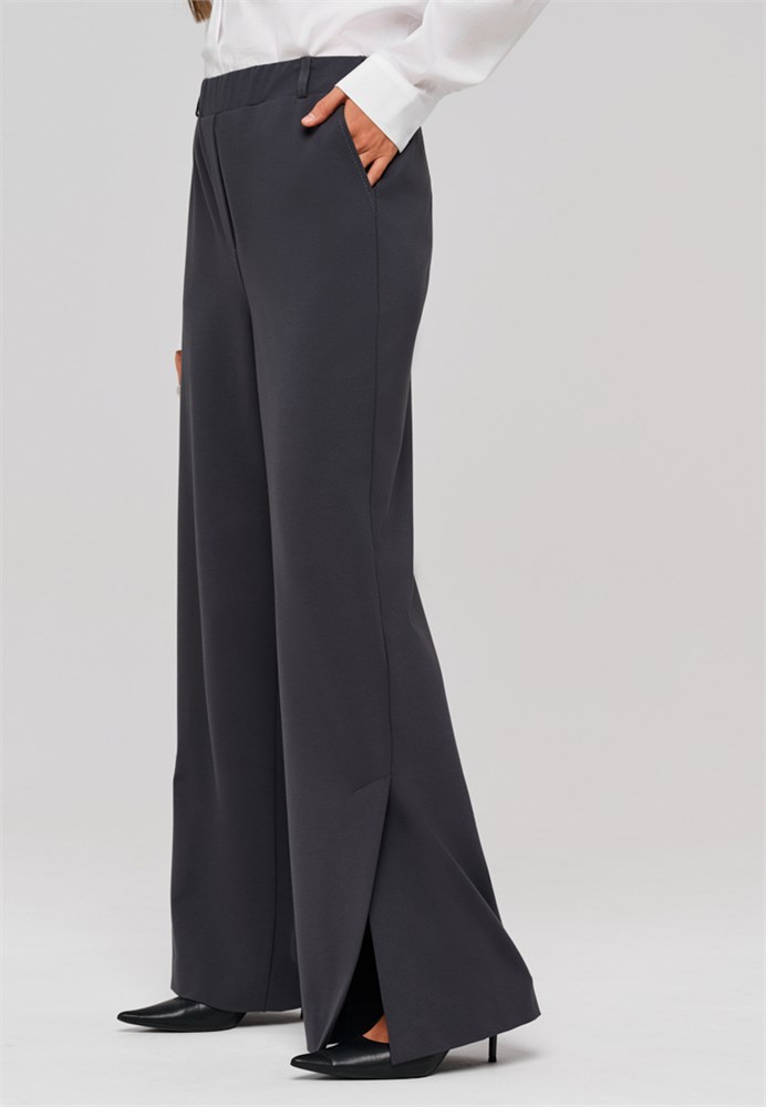 Брюки женские серые прямые. Брюки женские трубы позволяют сохранить свободу движений и подходят для любого типа фигуры. По низу брюк, в боковом шве разрез – щлица, которая плавно заходит на переднюю половинку брюк и создает элегантный силуэт и легкий образ. Брюки прямые женские серые выполнены из качественной, плотной, приятной на ощупь трикотажной ткани, которая не вытягивается и не скатывается при активном образе жизни. Брюки женские стрейч серые не деформируются после стирки. Брюки женские трикотажные отличное решение для тех, кто ценит удобство и долговечность одежды. Пояс на резинке обеспечивает отличную посадку без необходимости ремня, а боковые карманы добавляют практичности. Брюки классические женские с разрезом создадут модный образ, а также подчеркнут индивидуальность каждой девушки. Брюки офисные женские привлекательны своим дизайном и функциональностью. Брюки деловые женские идеальны как для повседневной носки, так и для более официальных мероприятий. Брюки серые женские классические гармонично с