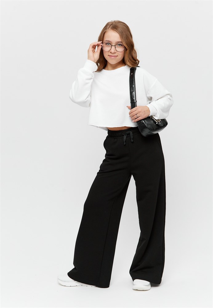 Брюки палаццо для девочки черные - идеальный выбор для вашей девочки, которая хочет быть модной и стильной в школе, на прогулке или в гостях. Брюки для девочки подростка широкие изготовлены из мягкого тонкого петельного хлопкового трикотажа. Спортивные штаны для девочки из трикотажа отлично подойдут летом, весной и осенью на каждый день, для прогулок, для дома и на физкультуру. Брюки для девочки однотонные тёмные станут отличным выбором для активных и стильных модниц на весну и в прохладную погоду. Брюки школьные для девочки подростка на резинке, с карманами, лаконичные, с расклешением к низу делают их практичными и удобными. Благодаря удобной мягкой резинке в поясе, брюки палаццо спортивные не сползают, хорошо облегают фигуру и не давят на живот. Широкие штаны для девочки однотонные черные обязательно понравятся современному подростку. Брюки для девочки палаццо чёрные подходят на лето, весну, осень и зиму, а широкий размерный ряд дает возможность экспериментировать в стиле family look для детей, подростков