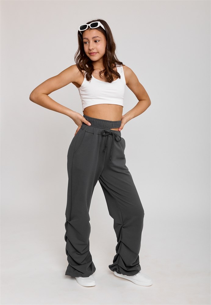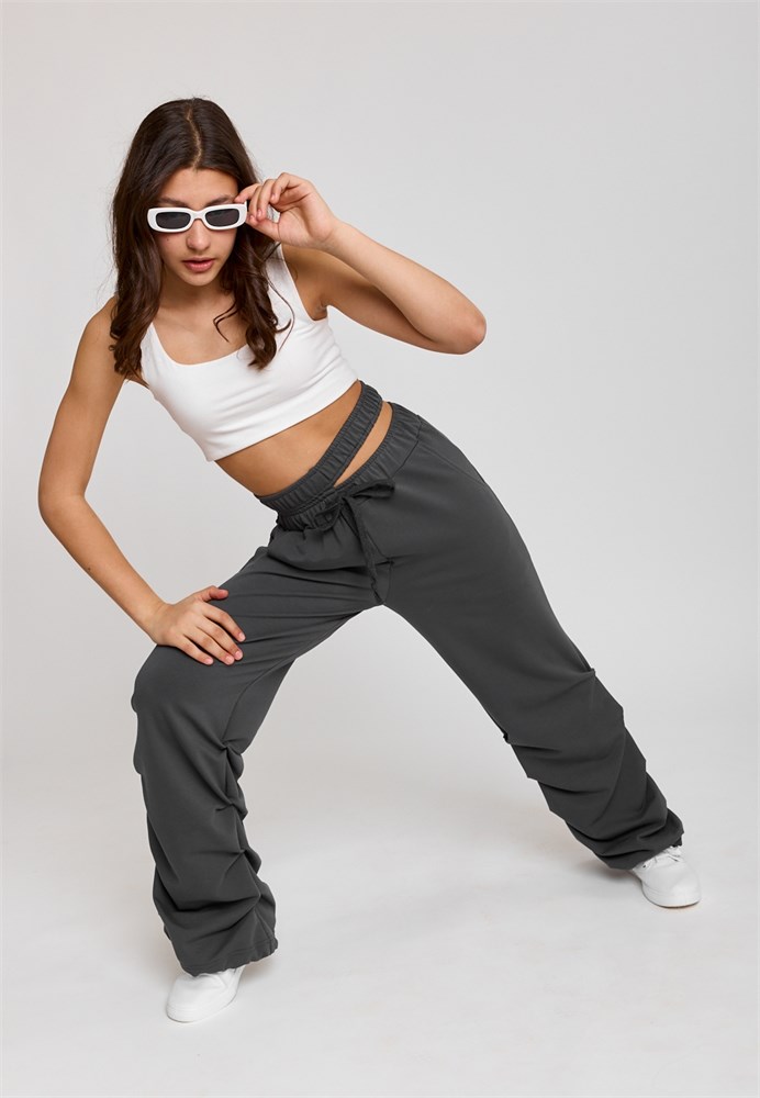 Брюки для девочки серые - идеальный выбор для вашей девочки, которая хочет быть модной и стильной в любой ситуации. Брюки прямые для девочки подростка изготовлены из мягкого тонкого петельного хлопкового трикотажа. Спортивные штаны для девочки графит из трикотажа отлично подойдут летом на каждый день, для прогулок, для дома и для спорта. Брюки для девочки однотонные станут отличным выбором для активных и стильных модниц на весну и в прохладную погоду. Брюки для девочки подростка необычные и уникальные: двойная резинка на поясе, плотно прилегает к телу, а разрез между ними позволяет создавать интересные и дерзкие образы, а также регулировать посадку на фигуре. По низу брюк, в швах складки создают объем и драпировку, что делает брюки для подростков уникальными и интересными. Брюки для девочки летние утягиваются на резинку и фиксируются, что позволяет регулировать ширину штанин по низу. Карманы придают практичность и удобство в носке. Благодаря удобной мягкой резинке в поясе, брюки спортивные прямые не сползают