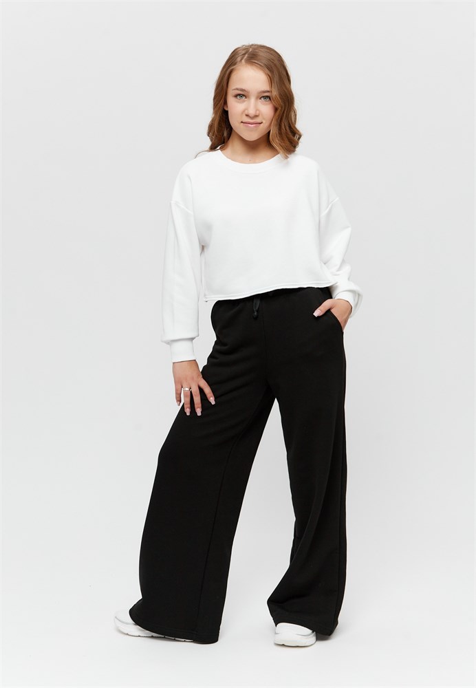 Брюки палаццо для девочки черные - идеальный выбор для вашей девочки, которая хочет быть модной и стильной в школе, на прогулке или в гостях. Брюки для девочки подростка широкие изготовлены из мягкого тонкого петельного хлопкового трикотажа. Спортивные штаны для девочки из трикотажа отлично подойдут летом, весной и осенью на каждый день, для прогулок, для дома и на физкультуру. Брюки для девочки однотонные тёмные станут отличным выбором для активных и стильных модниц на весну и в прохладную погоду. Брюки школьные для девочки подростка на резинке, с карманами, лаконичные, с расклешением к низу делают их практичными и удобными. Благодаря удобной мягкой резинке в поясе, брюки палаццо спортивные не сползают, хорошо облегают фигуру и не давят на живот. Широкие штаны для девочки однотонные черные обязательно понравятся современному подростку. Брюки для девочки палаццо чёрные подходят на лето, весну, осень и зиму, а широкий размерный ряд дает возможность экспериментировать в стиле family look для детей, подростков