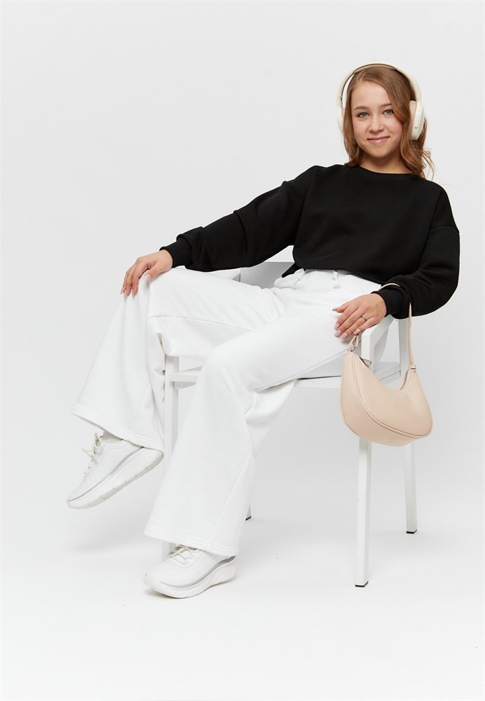 Брюки палаццо для девочки белые - идеальный выбор для вашей девочки, которая хочет быть модной и стильной в школе, на прогулке или в гостях. Брюки для девочки подростка широкие изготовлены из мягкого тонкого петельного хлопкового трикотажа. Спортивные штаны для девочки из трикотажа отлично подойдут летом, весной и осенью на каждый день, для прогулок, для дома и на физкультуру. Брюки для девочки однотонные светлые станут отличным выбором для активных и стильных модниц на весну и в прохладную погоду. Брюки для девочки подростка на резинке, с карманами, лаконичные, с расклешением к низу делают их практичными и удобными. Благодаря удобной мягкой резинке в поясе, брюки палаццо спортивные не сползают, хорошо облегают фигуру и не давят на живот. Широкие штаны для девочки однотонные кремовые обязательно понравятся современному подростку. Брюки для девочки палаццо экрю подходят на лето, весну, осень и зиму, а широкий размерный ряд дает возможность экспериментировать в стиле family look для детей, подростков и их мам.