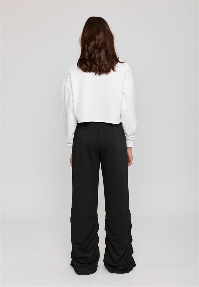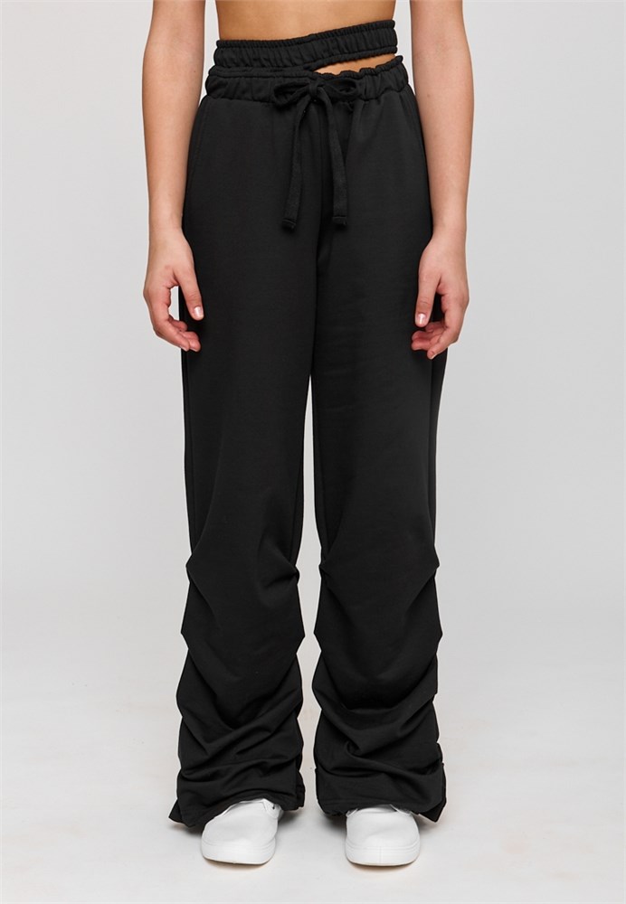 Брюки для девочки черные - идеальный выбор для вашей девочки, которая хочет быть модной и стильной в любой ситуации. Брюки прямые для девочки подростка изготовлены из мягкого тонкого петельного хлопкового трикотажа. Спортивные штаны для девочки черные из трикотажа отлично подойдут летом на каждый день, для прогулок, для дома и для спорта. Брюки для девочки однотонные станут отличным выбором для активных и стильных модниц на весну и в прохладную погоду. Брюки для девочки подростка необычные и уникальные: двойная резинка на поясе, плотно прилегает к телу, а разрез между ними позволяет создавать интересные и дерзкие образы, а также регулировать посадку на фигуре. По низу брюк, в швах складки создают объем и драпировку, что делает брюки для подростков уникальными и интересными. Брюки для девочки летние утягиваются на резинку и фиксируются, что позволяет регулировать ширину штанин по низу. Карманы придают практичность и удобство в носке. Благодаря удобной мягкой резинке в поясе, брюки спортивные прямые не сползаю