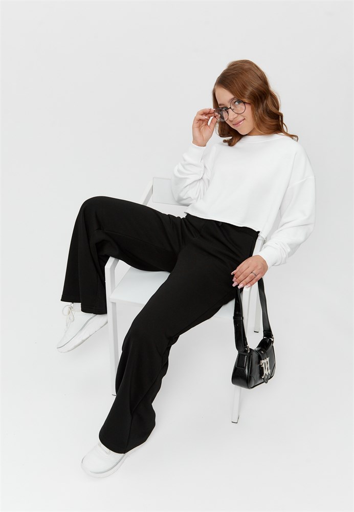 Брюки палаццо для девочки черные - идеальный выбор для вашей девочки, которая хочет быть модной и стильной в школе, на прогулке или в гостях. Брюки для девочки подростка широкие изготовлены из мягкого тонкого петельного хлопкового трикотажа. Спортивные штаны для девочки из трикотажа отлично подойдут летом, весной и осенью на каждый день, для прогулок, для дома и на физкультуру. Брюки для девочки однотонные тёмные станут отличным выбором для активных и стильных модниц на весну и в прохладную погоду. Брюки школьные для девочки подростка на резинке, с карманами, лаконичные, с расклешением к низу делают их практичными и удобными. Благодаря удобной мягкой резинке в поясе, брюки палаццо спортивные не сползают, хорошо облегают фигуру и не давят на живот. Широкие штаны для девочки однотонные черные обязательно понравятся современному подростку. Брюки для девочки палаццо чёрные подходят на лето, весну, осень и зиму, а широкий размерный ряд дает возможность экспериментировать в стиле family look для детей, подростков