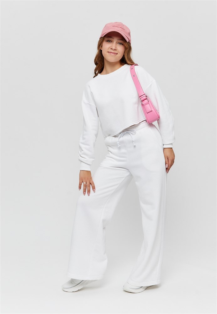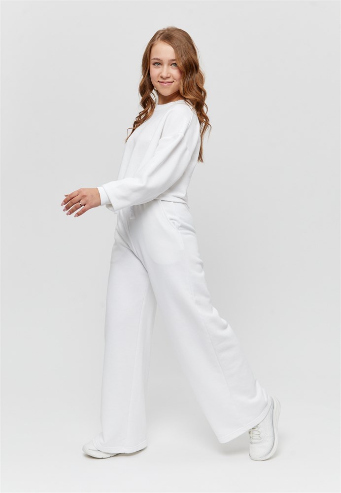 Брюки палаццо для девочки белые - идеальный выбор для вашей девочки, которая хочет быть модной и стильной в школе, на прогулке или в гостях. Брюки для девочки подростка широкие изготовлены из мягкого тонкого петельного хлопкового трикотажа. Спортивные штаны для девочки из трикотажа отлично подойдут летом, весной и осенью на каждый день, для прогулок, для дома и на физкультуру. Брюки для девочки однотонные светлые станут отличным выбором для активных и стильных модниц на весну и в прохладную погоду. Брюки для девочки подростка на резинке, с карманами, лаконичные, с расклешением к низу делают их практичными и удобными. Благодаря удобной мягкой резинке в поясе, брюки палаццо спортивные не сползают, хорошо облегают фигуру и не давят на живот. Широкие штаны для девочки однотонные кремовые обязательно понравятся современному подростку. Брюки для девочки палаццо экрю подходят на лето, весну, осень и зиму, а широкий размерный ряд дает возможность экспериментировать в стиле family look для детей, подростков и их мам.