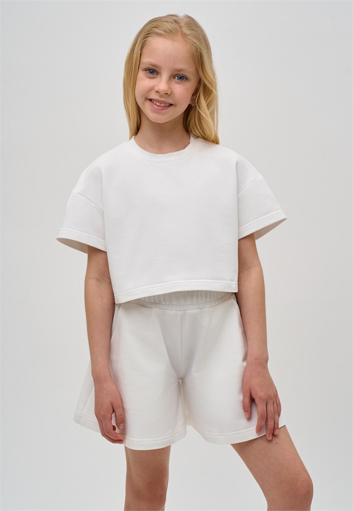 Футболка для девочки белая из премиальной трикотажной ткани. Футболка летняя для девочки с коротким рукавом молочного цвета - отличный выбор для активных занятий и спортивных мероприятий. Футболка детская для девочки укороченная экрю, с коротким рукавом, прямого свободного кроя и спущенная линия плеча обеспечивают отличную посадку, а широкий размерный ряд позволяет подобрать стильную футболку на любой возраст, от дошкольницы, школьницы и до подростка. Футболка для девочки оверсайз светлая может стать базой основного гардероба и подойдет для бега, прогулок, тренировок. Футболка для девочки подростка летняя обладает лаконичным дизайном, легко сочетается с летними вещами. Футболка однотонная для подростка без принта, идеально подойдет для нанесения принтов любым методом и дарит вам шанс проявить свою индивидуальность и создать уникальную вещь. Гипоаллергенная ткань не вызывает раздражений, что делает её идеальным выбором не только для повседневной носки, но и для тренировок. Футболка летняя обеспечивает хорошую