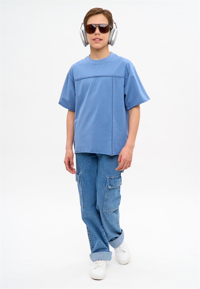 Футболка для мальчика синяя из премиального натурального хлопка. Отличный выбор для активных занятий и спортивных мероприятий. Футболка детская для мальчика с коротким рукавом, прямого свободного кроя, с декоративными элементами строчками, обеспечивает отличную посадку, а широкий размерный ряд позволяет подобрать стильную футболку на любой возраст, от дошкольника, школьника и до подростка. Особенность и стиль футболки создается за счет отделочных строчек, и швов, выполненных наружу. Футболка для подростка светлая, подойдет для занятий физкультурой, так же может стать базой основного гардероба и подойдет для бега, прогулок, тренировок. Летняя футболка для мальчика подростка голубая обладает лаконичным дизайном, легко сочетается с летними вещами. Футболка однотонная для подростка без принта, но с декоративными элементами, идеально подойдет для росписи акриловыми красками или нанесения принтов любым методом. Возможность окрашивания в стиле тай дай дарит вам шанс проявить свою индивидуальность и создать уникальну