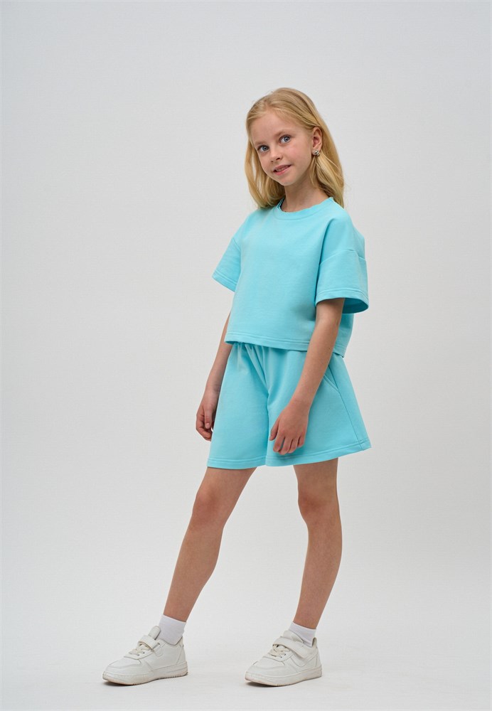 Футболка для девочки бирюзовая из премиальной трикотажной ткани. Футболка летняя для девочки с коротким рукавом голубая - отличный выбор для активных занятий и спортивных мероприятий. Футболка детская для девочки укороченная, с коротким рукавом, прямого свободного кроя и спущенная линия плеча обеспечивают отличную посадку, а широкий размерный ряд позволяет подобрать стильную футболку на любой возраст, от дошкольницы, школьницы и до подростка. Футболка для девочки оверсайз яркая может стать базой основного гардероба и подойдет для бега, прогулок, тренировок. Футболка для девочки подростка летняя обладает лаконичным дизайном, легко сочетается с летними вещами. Футболка однотонная для подростка без принта, идеально подойдет для нанесения принтов любым методом и дарит вам шанс проявить свою индивидуальность и создать уникальную вещь. Гипоаллергенная ткань не вызывает раздражений, что делает её идеальным выбором не только для повседневной носки, но и для тренировок. Футболка летняя обеспечивает хорошую вентиляцию