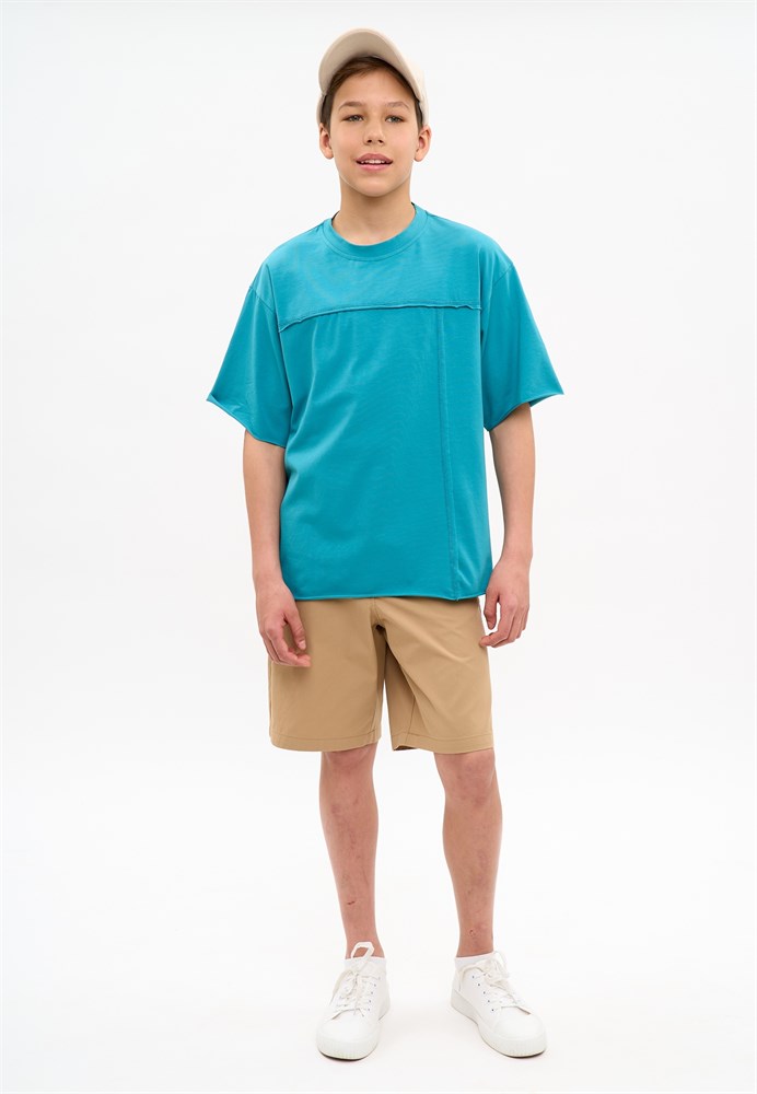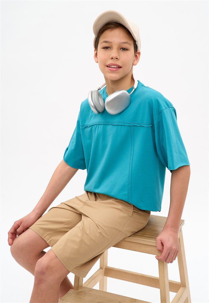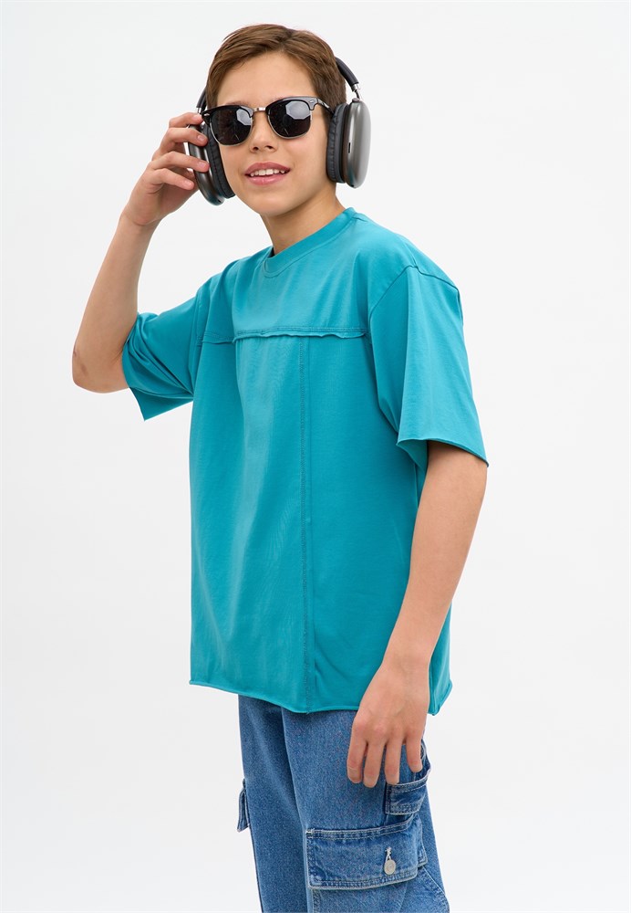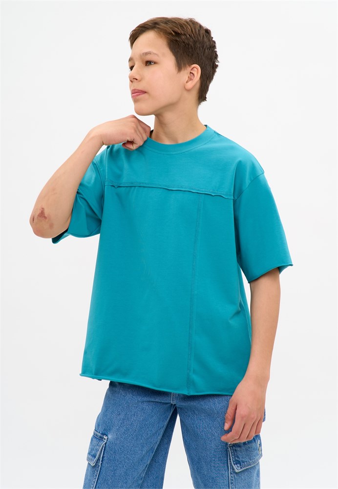 Футболка для мальчика зелёная из премиального натурального хлопка. Отличный выбор для активных занятий и спортивных мероприятий. Футболка детская для мальчика с коротким рукавом, прямого свободного кроя, с декоративными элементами строчками, обеспечивает отличную посадку, а широкий размерный ряд позволяет подобрать стильную футболку на любой возраст, от дошкольника, школьника и до подростка. Особенность и стиль футболки создается за счет отделочных строчек, и швов, выполненных наружу. Футболка для подростка бирюзовая, подойдет для занятий физкультурой, так же может стать базой основного гардероба и подойдет для бега, прогулок, тренировок. Летняя футболка для мальчика подростка цвета аквамарин обладает лаконичным дизайном, легко сочетается с летними вещами. Футболка однотонная для подростка без принта, но с декоративными элементами, идеально подойдет для росписи акриловыми красками или нанесения принтов любым методом. Возможность окрашивания в стиле тай дай дарит вам шанс проявить свою индивидуальность и созда