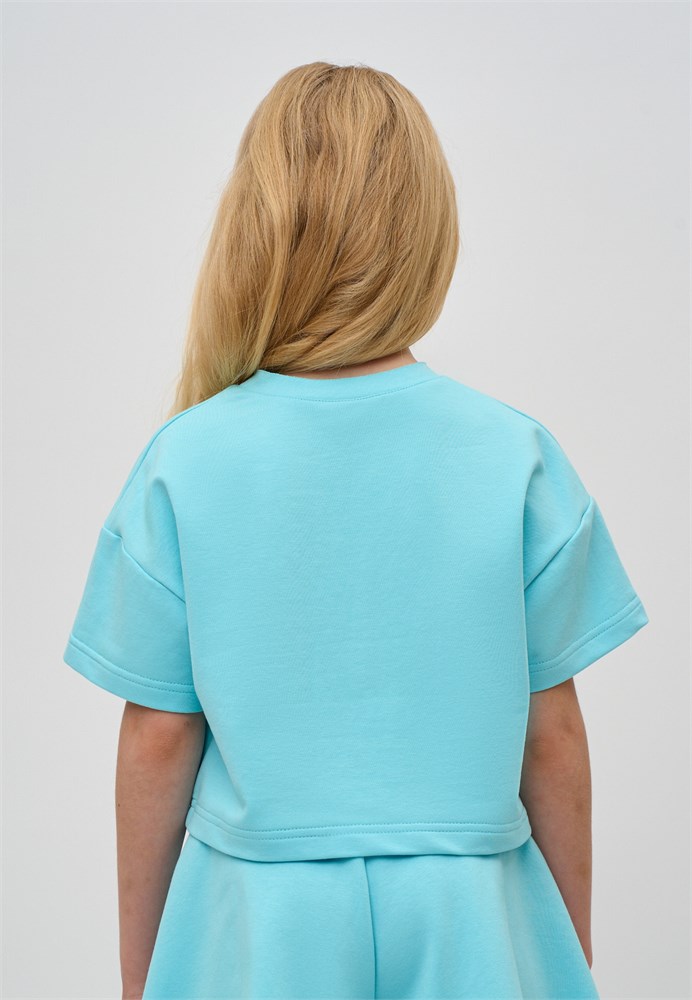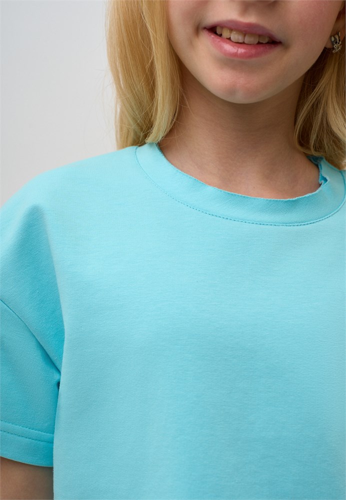 Футболка для девочки бирюзовая из премиальной трикотажной ткани. Футболка летняя для девочки с коротким рукавом голубая - отличный выбор для активных занятий и спортивных мероприятий. Футболка детская для девочки укороченная, с коротким рукавом, прямого свободного кроя и спущенная линия плеча обеспечивают отличную посадку, а широкий размерный ряд позволяет подобрать стильную футболку на любой возраст, от дошкольницы, школьницы и до подростка. Футболка для девочки оверсайз яркая может стать базой основного гардероба и подойдет для бега, прогулок, тренировок. Футболка для девочки подростка летняя обладает лаконичным дизайном, легко сочетается с летними вещами. Футболка однотонная для подростка без принта, идеально подойдет для нанесения принтов любым методом и дарит вам шанс проявить свою индивидуальность и создать уникальную вещь. Гипоаллергенная ткань не вызывает раздражений, что делает её идеальным выбором не только для повседневной носки, но и для тренировок. Футболка летняя обеспечивает хорошую вентиляцию