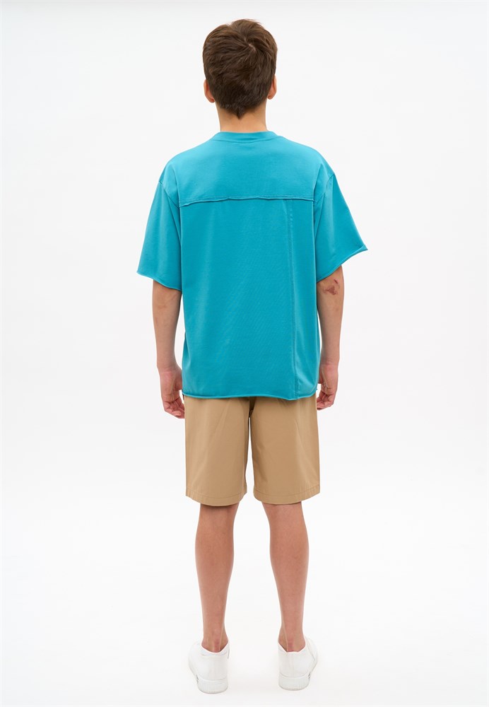 Футболка для мальчика зелёная из премиального натурального хлопка. Отличный выбор для активных занятий и спортивных мероприятий. Футболка детская для мальчика с коротким рукавом, прямого свободного кроя, с декоративными элементами строчками, обеспечивает отличную посадку, а широкий размерный ряд позволяет подобрать стильную футболку на любой возраст, от дошкольника, школьника и до подростка. Особенность и стиль футболки создается за счет отделочных строчек, и швов, выполненных наружу. Футболка для подростка бирюзовая, подойдет для занятий физкультурой, так же может стать базой основного гардероба и подойдет для бега, прогулок, тренировок. Летняя футболка для мальчика подростка цвета аквамарин обладает лаконичным дизайном, легко сочетается с летними вещами. Футболка однотонная для подростка без принта, но с декоративными элементами, идеально подойдет для росписи акриловыми красками или нанесения принтов любым методом. Возможность окрашивания в стиле тай дай дарит вам шанс проявить свою индивидуальность и созда