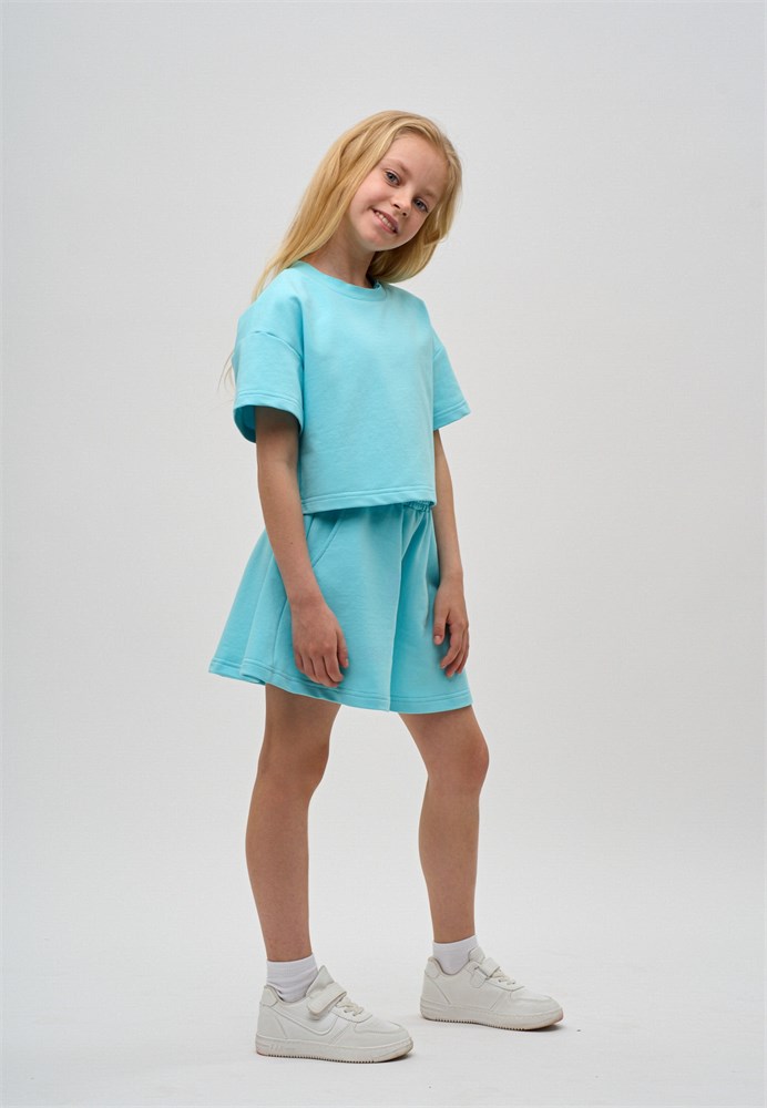 Футболка для девочки бирюзовая из премиальной трикотажной ткани. Футболка летняя для девочки с коротким рукавом голубая - отличный выбор для активных занятий и спортивных мероприятий. Футболка детская для девочки укороченная, с коротким рукавом, прямого свободного кроя и спущенная линия плеча обеспечивают отличную посадку, а широкий размерный ряд позволяет подобрать стильную футболку на любой возраст, от дошкольницы, школьницы и до подростка. Футболка для девочки оверсайз яркая может стать базой основного гардероба и подойдет для бега, прогулок, тренировок. Футболка для девочки подростка летняя обладает лаконичным дизайном, легко сочетается с летними вещами. Футболка однотонная для подростка без принта, идеально подойдет для нанесения принтов любым методом и дарит вам шанс проявить свою индивидуальность и создать уникальную вещь. Гипоаллергенная ткань не вызывает раздражений, что делает её идеальным выбором не только для повседневной носки, но и для тренировок. Футболка летняя обеспечивает хорошую вентиляцию