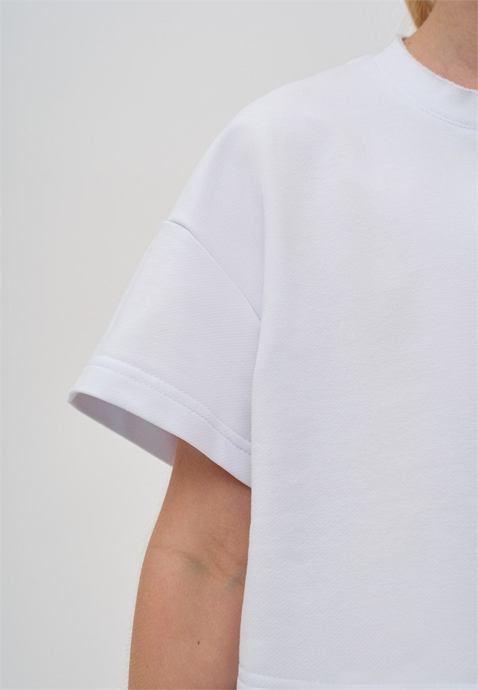 Футболка для девочки белая из премиальной трикотажной ткани. Футболка летняя для девочки с коротким рукавом белая - отличный выбор для активных занятий и спортивных мероприятий. Футболка детская для девочки укороченная, с коротким рукавом, прямого свободного кроя и спущенная линия плеча обеспечивают отличную посадку, а широкий размерный ряд позволяет подобрать стильную футболку на любой возраст, от дошкольницы, школьницы и до подростка. Футболка для девочки оверсайз светлая может стать базой основного гардероба и подойдет для бега, прогулок, тренировок. Футболка для девочки подростка летняя обладает лаконичным дизайном, легко сочетается с летними вещами. Футболка однотонная для подростка без принта, идеально подойдет для нанесения принтов любым методом. и дарит вам шанс проявить свою индивидуальность и создать уникальную вещь. Гипоаллергенная ткань не вызывает раздражений, что делает её идеальным выбором не только для повседневной носки, но и для тренировок. Футболка летняя обеспечивает хорошую вентиляцию и