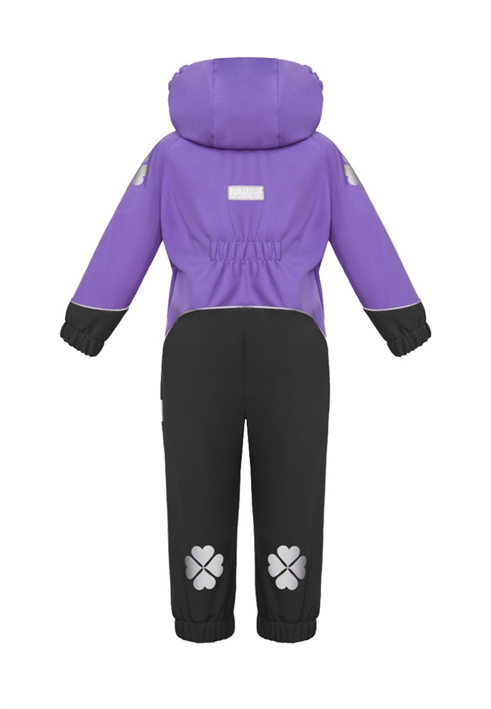 Комбинезон выполнен из материала «Софтшелл». Это высокотехнологичная трёхслойная дышащая ткань – мембрана утеплённая флисом. Отлично защищает от влаги и ветра. Светоотражающие элементы. Манжеты и пояс на резинке. Регулируемые штрипки. Для удобства ношения в помещении,предусмотрены внутренние лямки.Универсальный вариант для прогулок, активных игр и повседневного использования. Температурный режим от +3 до +18 градусов; Состав: Полиэстер - 95%, Эластан - 5%