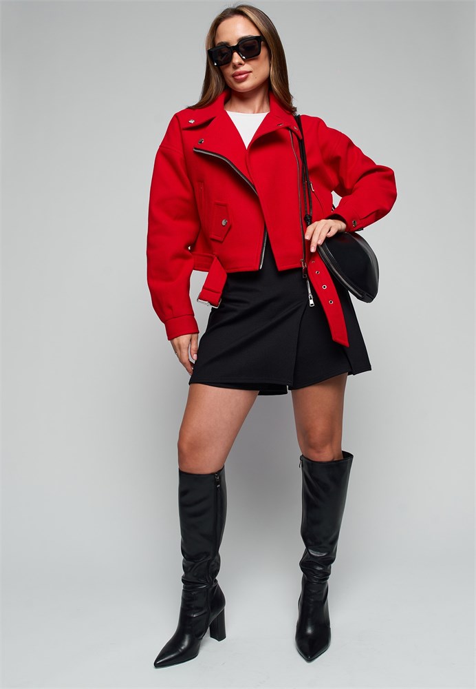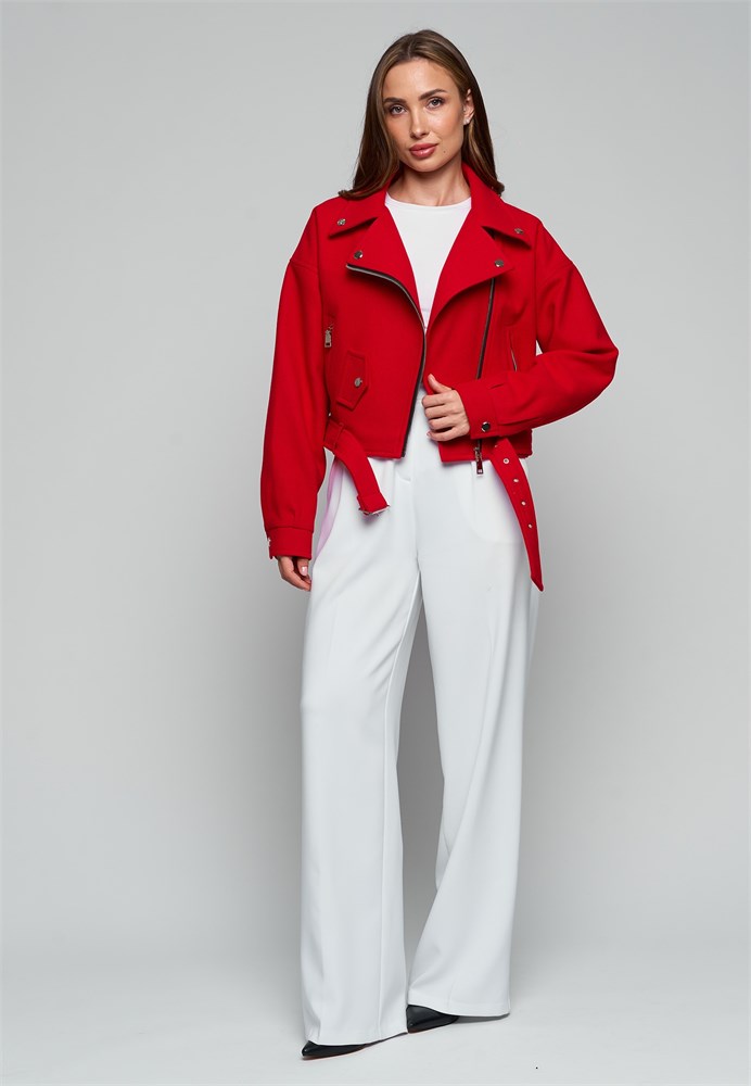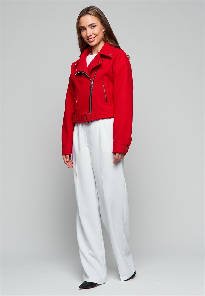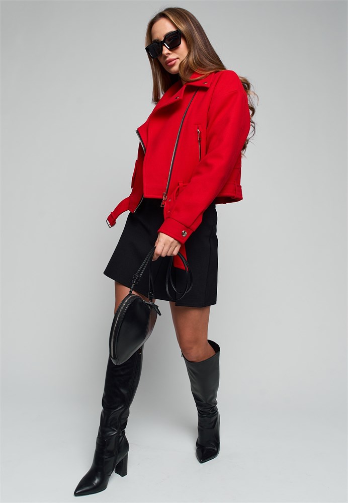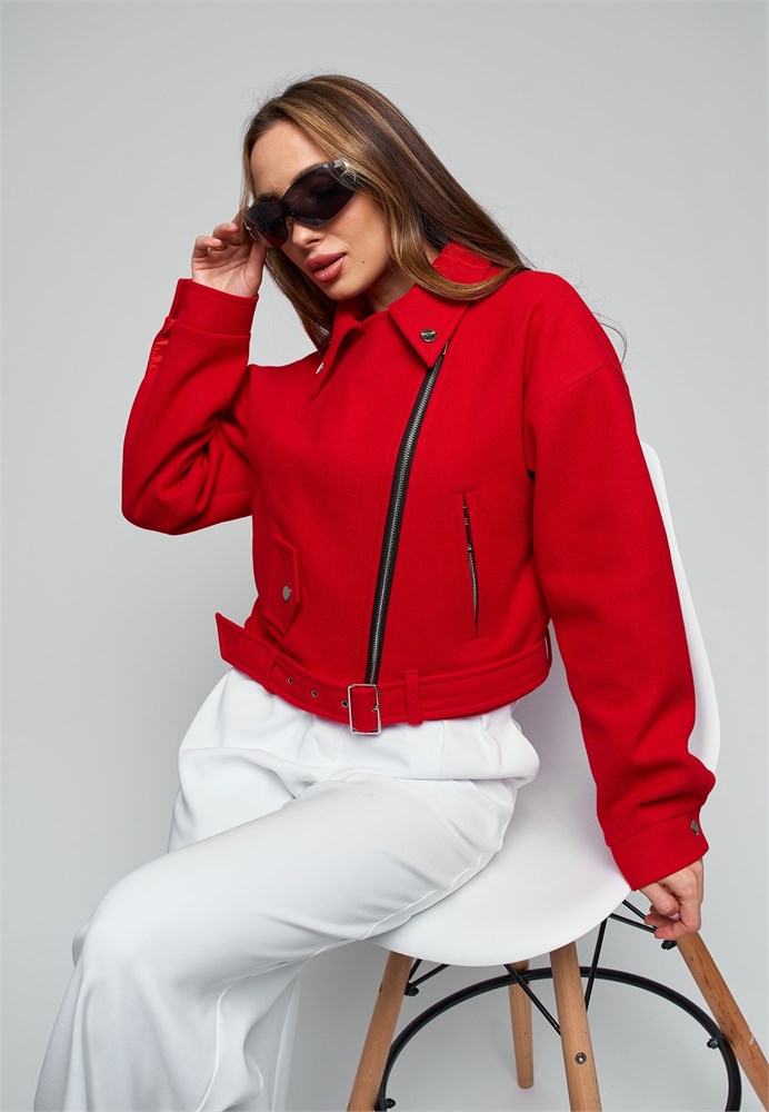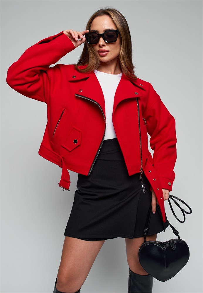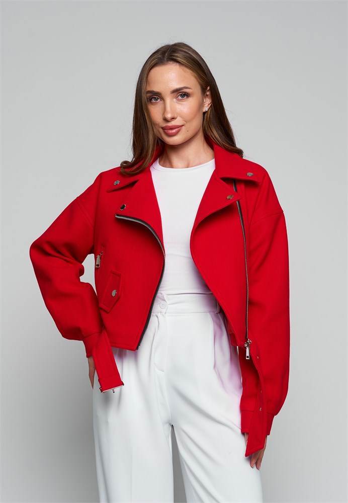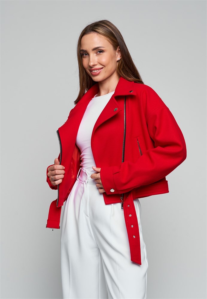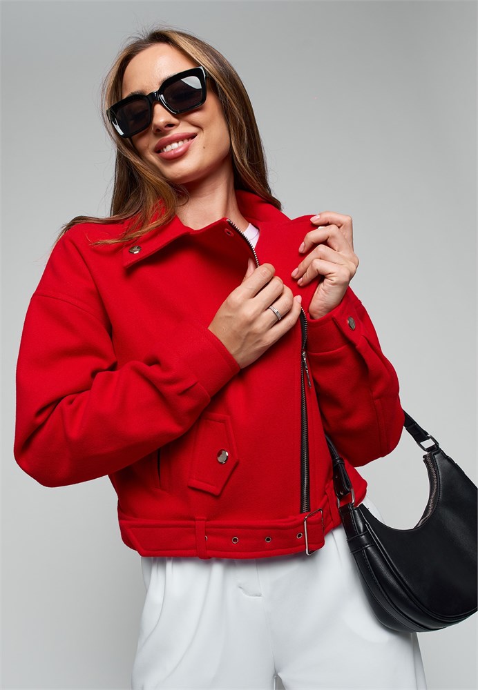 Женская стильная и модная куртка косуха, изготовленная из премиального драпа разработанного специально для нашего бренда Stylish AMADEO, с добавлением шерсти. Демисезонная прямая модель, классика, свободного кроя, подойдет на любую фигуру. Это демисезонная короткая косуха идеально подходит для весны и осени. Ремень располагается снизу, позволяя с легкостью корректировать линию талии. Прочная и качественная фурнитура прослужит долгие годы.  Эта трендовая куртка отлично подойдет для весенних и осенних образов, представляя собой универсальный демисезонный вариант. Английский воротник и застежка на молнии придают ей современный вид, гармонично сочетающий классические и молодежные элементы. Приятная подкладка из вискозы. Карманы на молнии обеспечат удобное и безопасное хранение мелки вещей. Наш драп имеет бархатистую текстуру и очень приятный на ощупь! А самое важное наше изделие не пилингуется, не образуются катышки. Необычная куртка с ремнем и заклепками подойдет как для прогулок, так и для посещения культурных