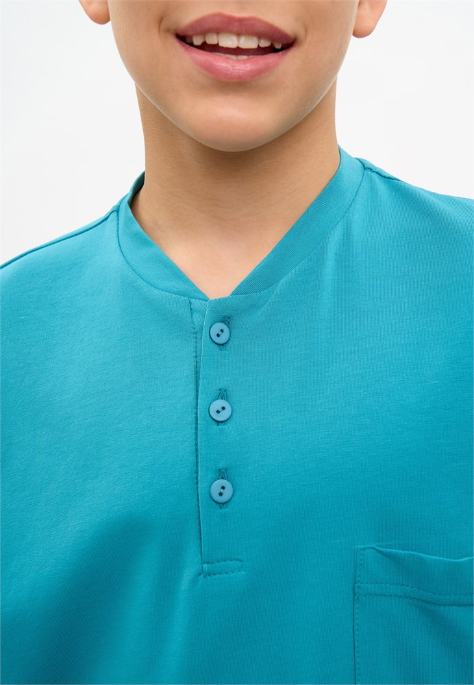 Поло для мальчика зеленого цвета из премиального натурального хлопка. Поло для мальчика летнее с коротким рукавом - отличный выбор для активных занятий и спортивных мероприятий. Футболка поло для мальчика бирюзовая с коротким рукавом, прямого свободного кроя, обеспечивает отличную посадку, а широкий размерный ряд позволяет подобрать стильную футболку поло на любой возраст, от дошкольника, школьника и до подростка. Особенность и стиль поло создается за счет воротника стойки из трикотажа, застежки на три пуговицы и нагрудного кармана. Футболка поло цвета аквамарин для подростка, может стать базой основного гардероба и подойдет для бега, прогулок, тренировок. Летнее поло для мальчика обладает лаконичным дизайном и легко сочетается с летними вещами. Гипоаллергенная ткань из хлопка хорошо пропускает воздух, не вызывает раздражений, что делает его идеальным выбором не только для повседневной носки, но и для тренировок. Дышащая ткань поло обеспечивает хорошую вентиляцию и комфорт в летнее время во время физических н