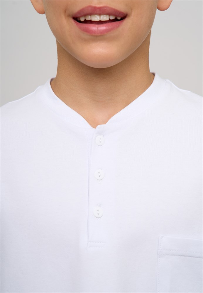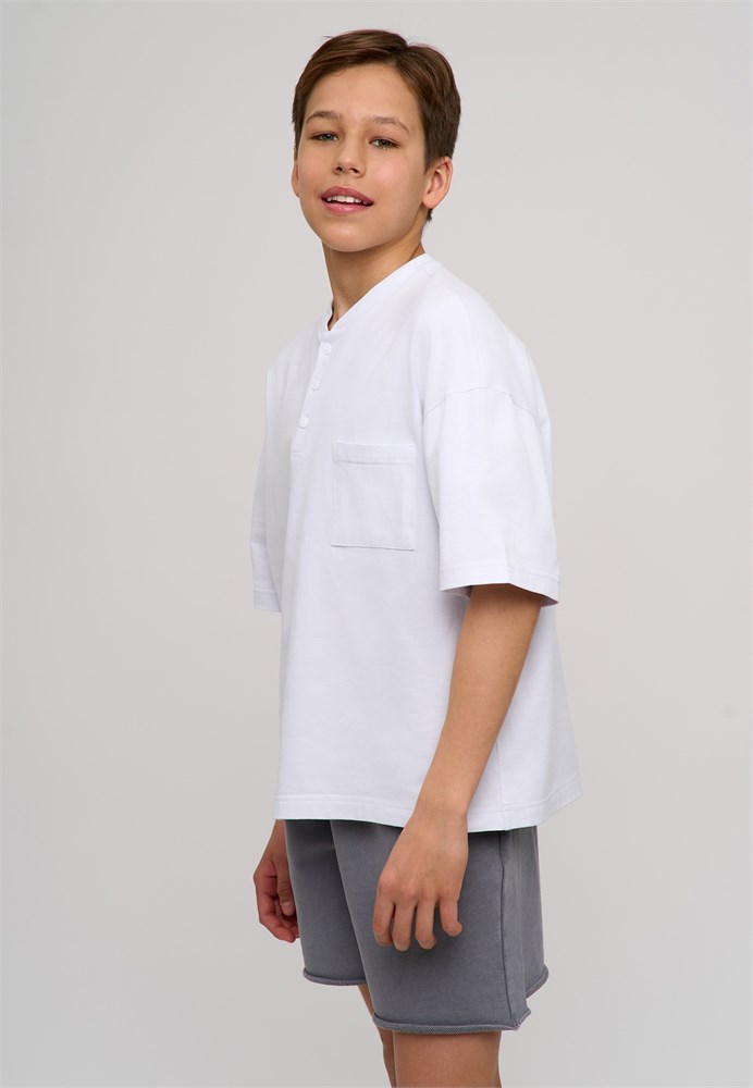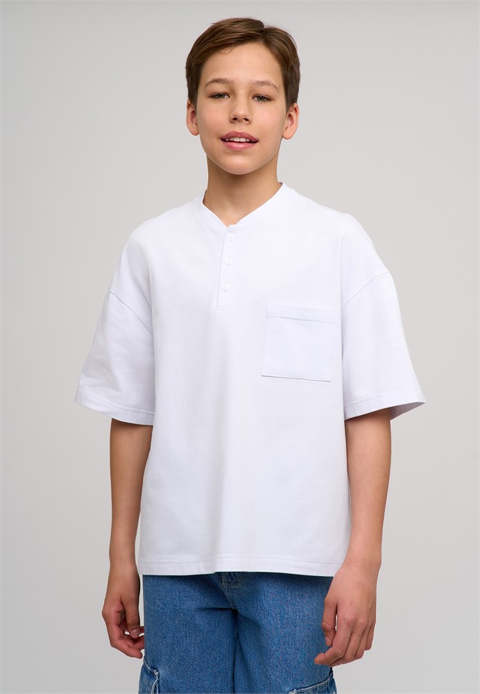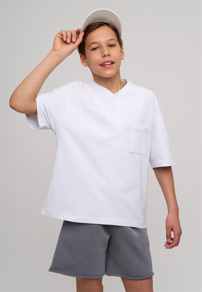Поло для мальчика белое из премиального натурального хлопка. Поло для мальчика с коротким рукавом в школу - отличный выбор для активных занятий и спортивных мероприятий. Футболка поло для мальчика с коротким рукавом, прямого свободного кроя, обеспечивает отличную посадку, а широкий размерный ряд позволяет подобрать стильную футболку поло на любой возраст, от дошкольника, школьника и до подростка. Особенность и стиль поло создается за счет воротника стойки из трикотажа, застежки на три пуговицы и нагрудного кармана. Футболка поло для подростка светлая, может стать базой основного гардероба и подойдет для бега, прогулок, тренировок. Летнее поло для мальчика обладает лаконичным дизайном. Гипоаллергенная ткань из хлопка хорошо пропускает воздух, не вызывает раздражений, что делает его идеальным выбором не только для повседневной носки в школе, но и для тренировок. Дышащая ткань светлого поло для мальчика обеспечивает хорошую вентиляцию и комфорт во время физических нагрузок и прослужит долгое время. Поло для школ