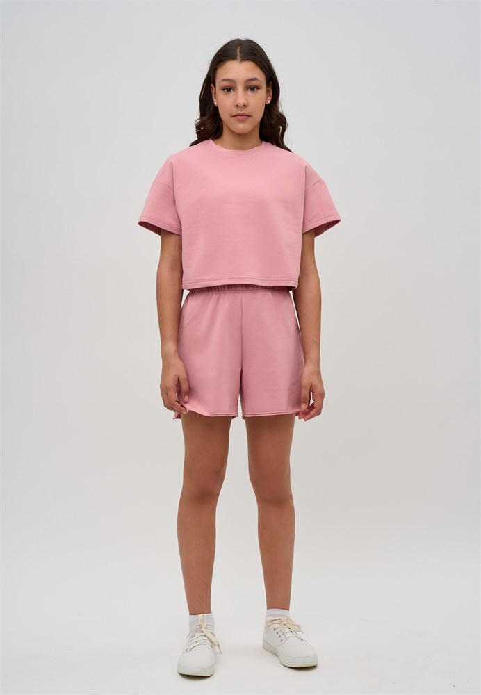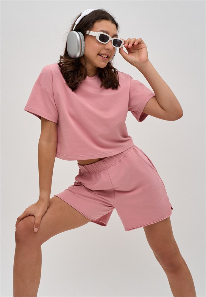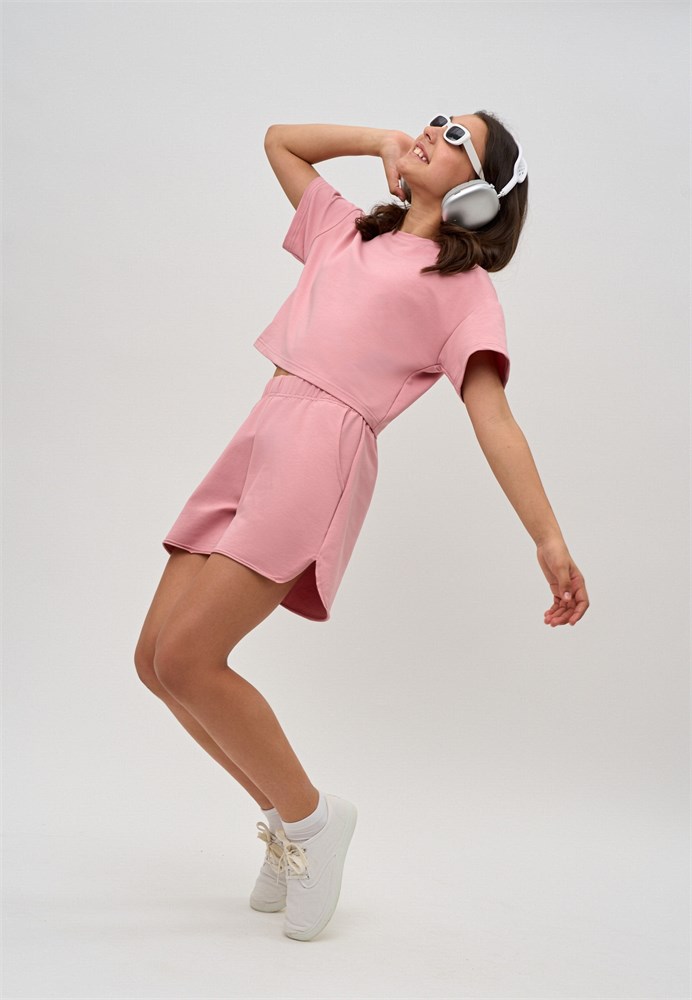Шорты для девочки розовые из трикотажа. Шорты для девочки летние молодежные - отличный выбор для активных занятий и спортивных мероприятий. Шорты летние светлые специально разработанные для подростков, имеют стандартную посадку с широкой резинкой, гарантирующей отличную посадку и комфортную носку. Шорты детские прямые с карманами, по боковым швам закругленные разрезы и низ шорт с открытым не обработанным срезом, добавляют модности и актуальности образу. Шорты для подростка летние, пыльно-розового цвета подходят для различных активностей, будь то спортивные тренировки, танцы или просто прогулку на свежем воздухе. Шорты трикотажные розовые из футера, создают комфорт и свободу движений в течение всего дня. Данный материал делает укороченные шорты мягкими и приятными к телу, позволяя коже дышать и подойдут для жаркого летнего сезона. Шорты школьные для девочки, станут незаменимым выбором для школы, для сада, для дома и для пляжного отдыха. Легкие и стильные детские трикотажные шорты – идеальны для активных девоче