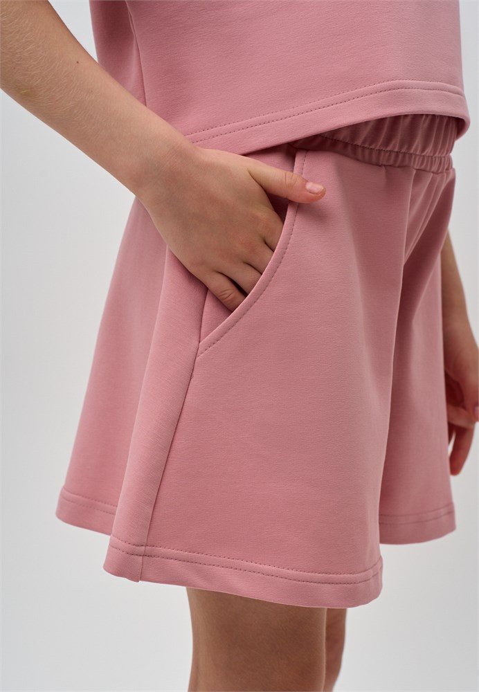 Шорты для девочки розовые из трикотажа высшего качества. Шорты для девочки летние широкие - отличный выбор для активных занятий, прогулок и для дома. Шорты светлые летние для девочки, имеют стандартную посадку с широкой резинкой, гарантирующей отличную и комфортную носку, а мягкая резинка не стягивает и не давит на живот. Шорты детские с карманами широкие, напоминающие юбку, добавляют модности и актуальности образу. Юбка шорты для девочки летняя, подходит для различных активностей, будь то спортивные тренировки, танцы или просто прогулку на свежем воздухе. Шорты пыльно-розовые трикотажные для девочки, создают комфорт и свободу движений в течение всего дня. Данный материал делает укороченные шорты-юбка мягкими и приятными к телу, позволяя коже дышать и подойдут для жаркого летнего сезона. Шорты для девочки подростка, станут незаменимым выбором для спортивных мероприятий, для сада, для дома и для активного отдыха. Легкие и стильные детские трикотажные широкие шорты – идеальны для активных девочек!