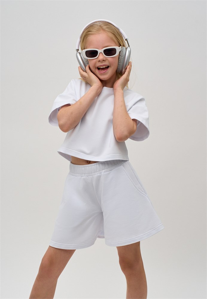 Шорты для девочки белые из трикотажа высшего качества. Шорты для девочки летние широкие - отличный выбор для активных занятий, прогулок и для дома. Шорты светлые летние для девочки, имеют стандартную посадку с широкой резинкой, гарантирующей отличную и комфортную носку, а мягкая резинка не стягивает и не давит на живот. Шорты детские с карманами широкие, напоминающие юбку, добавляют модности и актуальности образу. Юбка шорты для девочки летняя, подходит для различных активностей, будь то спортивные тренировки, танцы или просто прогулка на свежем воздухе. Шорты белые трикотажные для девочки , создают комфорт и свободу движений в течение всего дня. Данный материал делает укороченные шорты-юбка мягкими и приятными к телу, позволяя коже дышать и подойдут для жаркого летнего сезона. Шорты для девочки подростка, станут незаменимым выбором для спортивных мероприятий, для сада, для дома и для активного отдыха. Легкие и стильные детские трикотажные широкие шорты – идеальны для активных девочек!