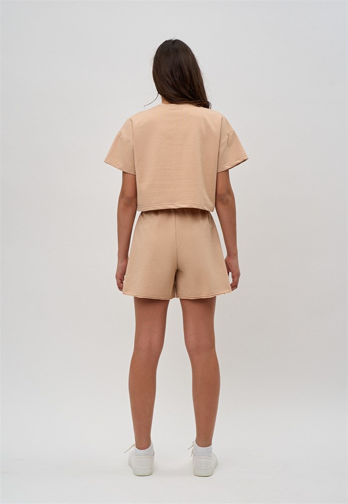 Шорты для девочки бежевые из трикотажа. Шорты для девочки летние молодежные - отличный выбор для активных занятий и спортивных мероприятий. Шорты летние светлые специально разработанные для подростков, имеют стандартную посадку с широкой резинкой, гарантирующей отличную посадку и комфортную носку. Шорты детские прямые с карманами, по боковым швам закругленные разрезы и низ шорт с открытым не обработанным срезом, добавляют модности и актуальности образу. Шорты для подростка летние, подходят для различных активностей, будь то спортивные тренировки, танцы или просто прогулку на свежем воздухе. Шорты трикотажные бежевые из футера, создают комфорт и свободу движений в течение всего дня. Данный материал делает укороченные шорты мягкими и приятными к телу, позволяя коже дышать и подойдут для жаркого летнего сезона. Шорты школьные для девочки, станут незаменимым выбором для школы, для сада, для дома и для пляжного отдыха. Легкие и стильные детские трикотажные шорты – идеальны для активных девочек!
