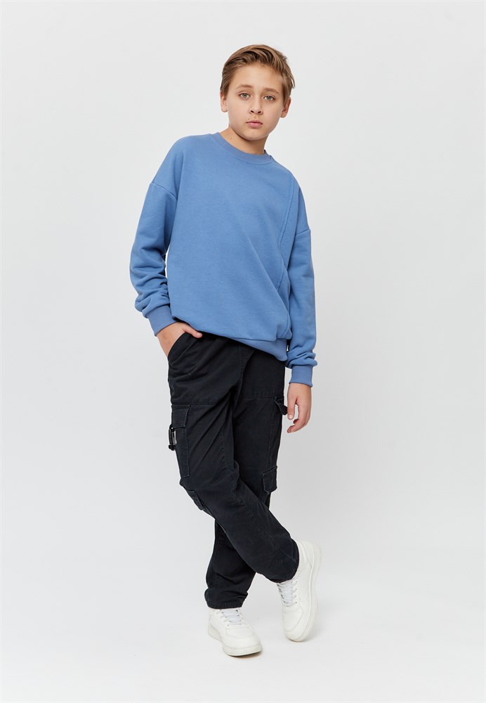 Свитшот для мальчика – незаменимая вещь в гардеробе каждого ребёнка. Джемпер выполнен из мягкого хлопкового трикотажа премиум класса с мелкими петлями на изнанке. Лёгкая и дышащая ткань приятна к телу и не вызывает раздражений. Свободный крой свитшота подарит абсолютный комфорт подростку на протяжении всего дня. Свитшот для мальчика из футера пенье подходит как для прохладной погоды, так и для теплых дней. Джемпер из эластичного трикотажа не стесняет телодвижений и прекрасно подойдёт для активных игр на улице и занятий спортом. Стильный лонгслив для мальчика сочетается с джинсами и брюками, что делает его универсальным предметом одежды. Толстовка понравится тем, кто любит современный свободный стиль и комфорт. Свитшот можно носить в качестве повседневной одежды или в школу. Худи для мальчика - прекрасное решение для активных детей. Стильная толстовка для мальчика будет отличным дополнением базового гардероба - это модный и современный тренд. Модный джемпер гармонично вписывается в школьную форму, обеспечивая