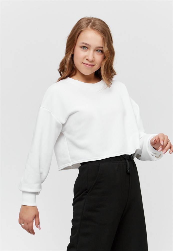 Свитшот для девочек укороченный – незаменимая вещь в гардеробе каждой модницы. Джемпер выполнен из мягкого хлопкового трикотажа с мелкими петлями на изнанке. Свободный крой свитшота подарит абсолютный комфорт подростку на протяжении всего дня. Свитшот для девочек оверсайз из футера подходит как для прохладной погоды, так и для теплых дней. Стильный лонгслив для девочек сочетается с юбками, джинсами и брюками, что делает его универсальным предметом одежды. Толстовка понравится тем, кто любит современный свободный стиль и комфорт. Свитшот можно носить в качестве повседневной одежды, в школу или на праздник. Худи для девочек - прекрасное решение для модных и активных детей. Красивая толстовка для девочек будет отличным дополнением базового гардероба - это модный и современный тренд. Лёгкая и дышащая ткань приятна к телу и не вызывает раздражений.